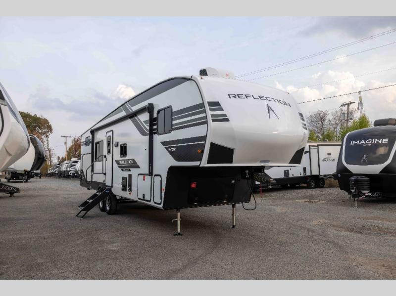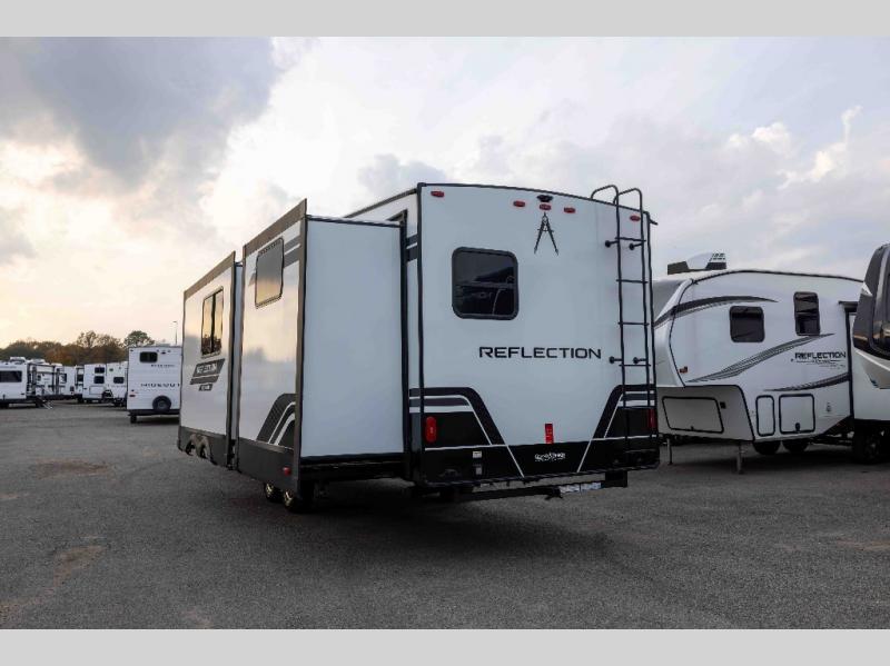 Each Reflection 100 Series fifth wheel by Grand Design is affordable and packed with luxury for unforgettable camping memories! The MorRyde CRE3000 suspension system and Goodyear Endurance tires will provide smooth towing from home to campground. And the solar package with a 180W solar panel, 60 Amp charge controller and 12V refrigerator will allow you to camp for longer periods of time and in more locations! A heated and enclosed underbelly with circulating heat is included in the Arctic 4-Seasons Protection Package, along with a double insulated roof and front cap, and thermofoil insulation under the holding tanks so you can camp all year long if you choose. You will appreciate having an on-demand water heater for hot showers after exploring, and the universal all-in-one docking station will let you monitor your RVs tanks levels and functions with ease. These models also include many luxurious interior features, such as premium Congoleum flooring, pleated shades, residential cabinetry, and matte black fixtures and hardware. Don't let the Reflection 100 Series fifth wheels pass you by!