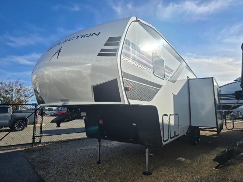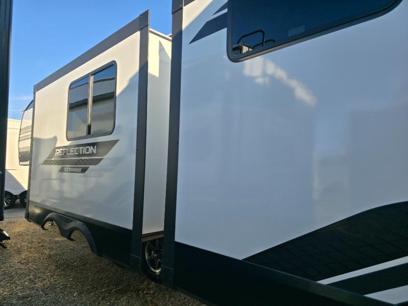Each Reflection 100 Series fifth wheel by Grand Design is affordable and packed with luxury for unforgettable camping memories! The MorRyde CRE3000 suspension system and Goodyear Endurance tires will provide smooth towing from home to campground. And the solar package with a 180W solar panel, 60 Amp charge controller and 12V refrigerator will allow you to camp for longer periods of time and in more locations! A heated and enclosed underbelly with circulating heat is included in the Arctic 4-Seasons Protection Package, along with a double insulated roof and front cap, and thermofoil insulation under the holding tanks so you can camp all year long if you choose. You will appreciate having an on-demand water heater for hot showers after exploring, and the universal all-in-one docking station will let you monitor your RVs tanks levels and functions with ease. These models also include many luxurious interior features, such as premium Congoleum flooring, pleated shades, residential cabinetry, and matte black fixtures and hardware. Don't let the Reflection 100 Series fifth wheels pass you by!
