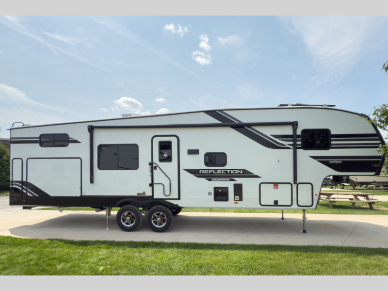Each Reflection 100 Series fifth wheel by Grand Design is affordable and packed with luxury for unforgettable camping memories! The MorRyde CRE3000 suspension system and Goodyear Endurance tires will provide smooth towing from home to campground. And the solar package with a 180W solar panel, 60 Amp charge controller and 12V refrigerator will allow you to camp for longer periods of time and in more locations! A heated and enclosed underbelly with circulating heat is included in the Arctic 4-Seasons Protection Package, along with a double insulated roof and front cap, and thermofoil insulation under the holding tanks so you can camp all year long if you choose. You will appreciate having an on-demand water heater for hot showers after exploring, and the universal all-in-one docking station will let you monitor your RVs tanks levels and functions with ease. These models also include many luxurious interior features, such as premium Congoleum flooring, pleated shades, residential cabinetry, and matte black fixtures and hardware. Don't let the Reflection 100 Series fifth wheels pass you by!