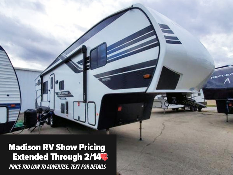Each Reflection 100 Series fifth wheel by Grand Design is affordable and packed with luxury for unforgettable camping memories! The MorRyde CRE3000 suspension system and Goodyear Endurance tires will provide smooth towing from home to campground. And the solar package with a 180W solar panel, 60 Amp charge controller and 12V refrigerator will allow you to camp for longer periods of time and in more locations! A heated and enclosed underbelly with circulating heat is included in the Arctic 4-Seasons Protection Package, along with a double insulated roof and front cap, and thermofoil insulation under the holding tanks so you can camp all year long if you choose. You will appreciate having an on-demand water heater for hot showers after exploring, and the universal all-in-one docking station will let you monitor your RVs tanks levels and functions with ease. These models also include many luxurious interior features, such as premium Congoleum flooring, pleated shades, residential cabinetry, and matte black fixtures and hardware. Don't let the Reflection 100 Series fifth wheels pass you by!