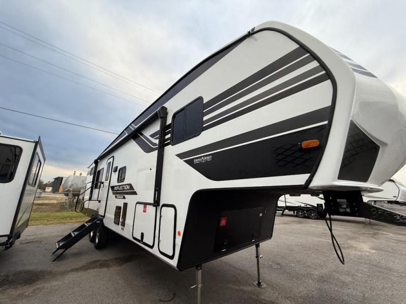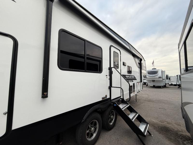 Each Reflection 100 Series fifth wheel by Grand Design is affordable and packed with luxury for unforgettable camping memories! The MorRyde CRE3000 suspension system and Goodyear Endurance tires will provide smooth towing from home to campground. And the solar package with a 180W solar panel, 60 Amp charge controller and 12V refrigerator will allow you to camp for longer periods of time and in more locations! A heated and enclosed underbelly with circulating heat is included in the Arctic 4-Seasons Protection Package, along with a double insulated roof and front cap, and thermofoil insulation under the holding tanks so you can camp all year long if you choose. You will appreciate having an on-demand water heater for hot showers after exploring, and the universal all-in-one docking station will let you monitor your RVs tanks levels and functions with ease. These models also include many luxurious interior features, such as premium Congoleum flooring, pleated shades, residential cabinetry, and matte black fixtures and hardware. Don't let the Reflection 100 Series fifth wheels pass you by!