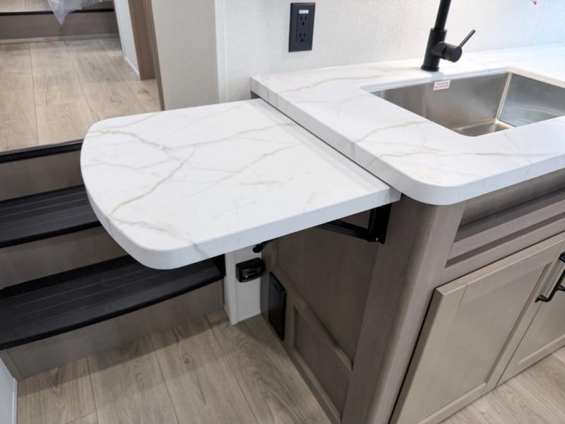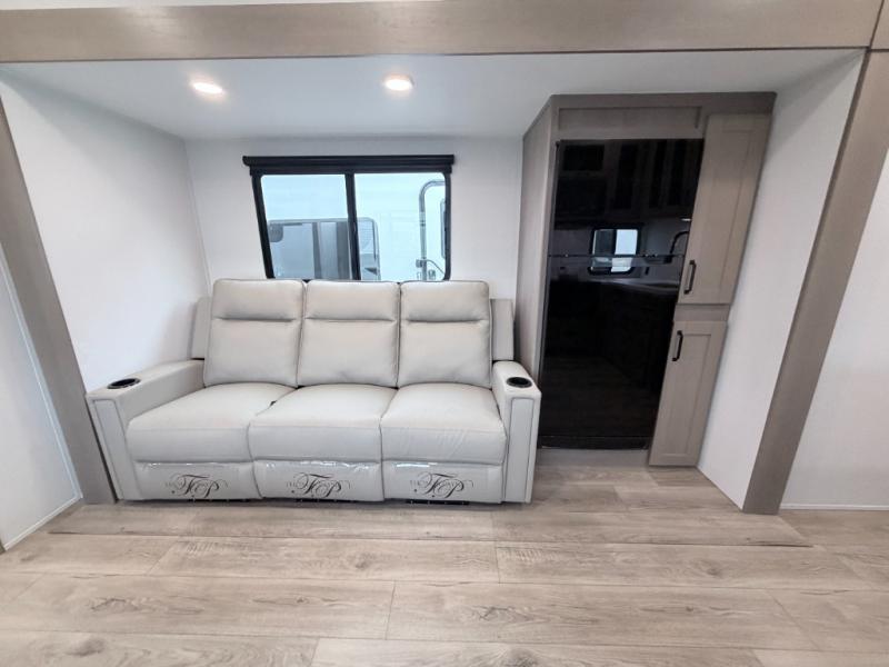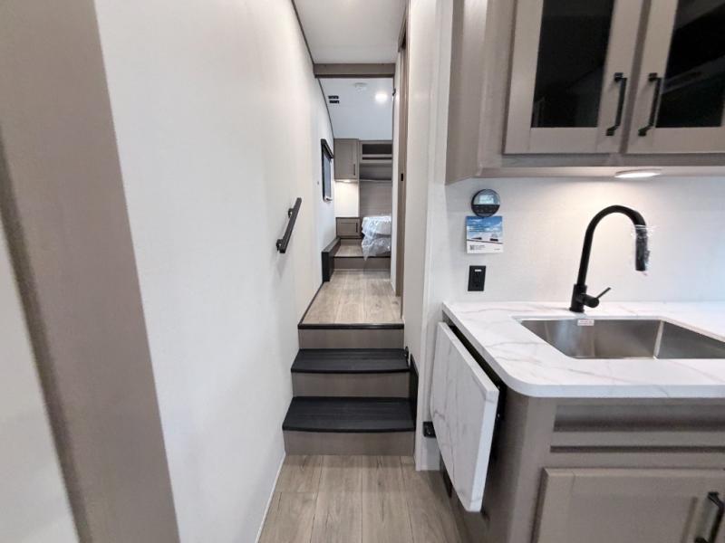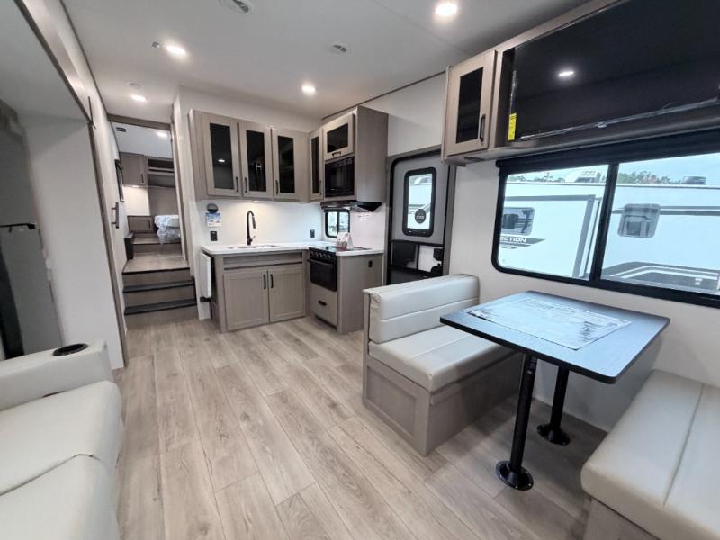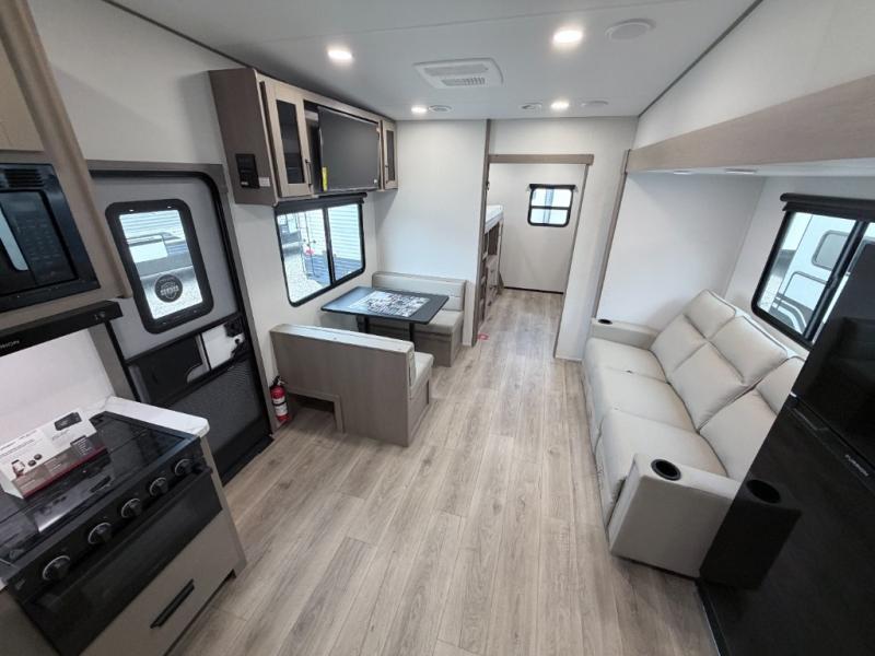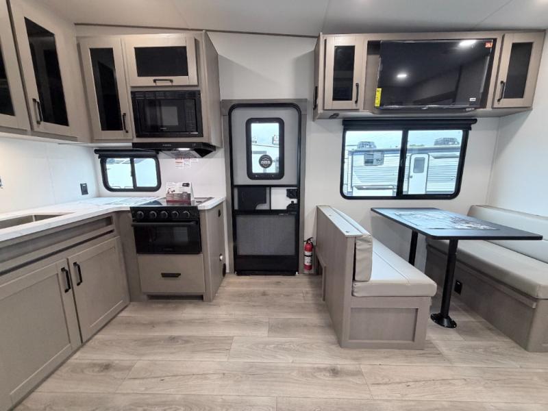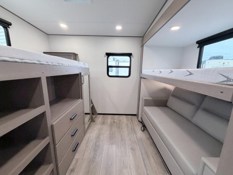 This Reflection 100 Series fifth wheel blends family-friendly sleeping arrangements with comfortable living areas and upgraded towing confidence. With a dedicated bunkhouse, private bedroom, and outdoor kitchen, it’s built for families who want more space, comfort, and capability at the campsite.