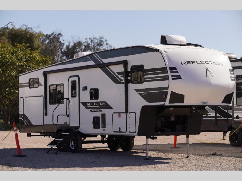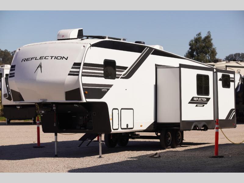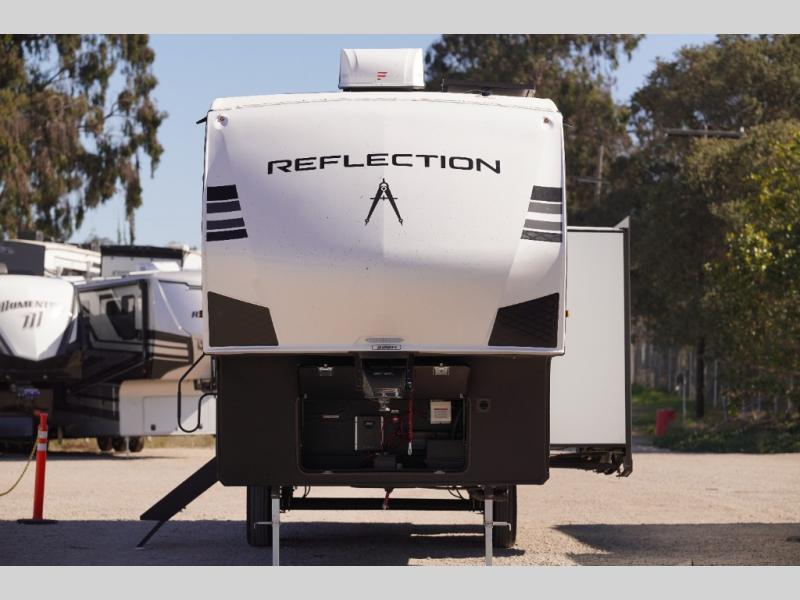 Each Reflection 100 Series fifth wheel by Grand Design is affordable and packed with luxury for unforgettable camping memories! The MorRyde CRE3000 suspension system and Goodyear Endurance tires will provide smooth towing from home to campground. And the solar package with a 180W solar panel, 60 Amp charge controller and 12V refrigerator will allow you to camp for longer periods of time and in more locations! A heated and enclosed underbelly with circulating heat is included in the Arctic 4-Seasons Protection Package, along with a double insulated roof and front cap, and thermofoil insulation under the holding tanks so you can camp all year long if you choose. You will appreciate having an on-demand water heater for hot showers after exploring, and the universal all-in-one docking station will let you monitor your RVs tanks levels and functions with ease. These models also include many luxurious interior features, such as premium Congoleum flooring, pleated shades, residential cabinetry, and matte black fixtures and hardware. Don't let the Reflection 100 Series fifth wheels pass you by!