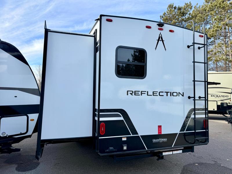 Each Reflection 100 Series fifth wheel by Grand Design is affordable and packed with luxury for unforgettable camping memories! The MorRyde CRE3000 suspension system and Goodyear Endurance tires will provide smooth towing from home to campground. And the solar package with a 180W solar panel, 60 Amp charge controller and 12V refrigerator will allow you to camp for longer periods of time and in more locations! A heated and enclosed underbelly with circulating heat is included in the Arctic 4-Seasons Protection Package, along with a double insulated roof and front cap, and thermofoil insulation under the holding tanks so you can camp all year long if you choose. You will appreciate having an on-demand water heater for hot showers after exploring, and the universal all-in-one docking station will let you monitor your RVs tanks levels and functions with ease. These models also include many luxurious interior features, such as premium Congoleum flooring, pleated shades, residential cabinetry, and matte black fixtures and hardware. Don't let the Reflection 100 Series fifth wheels pass you by!