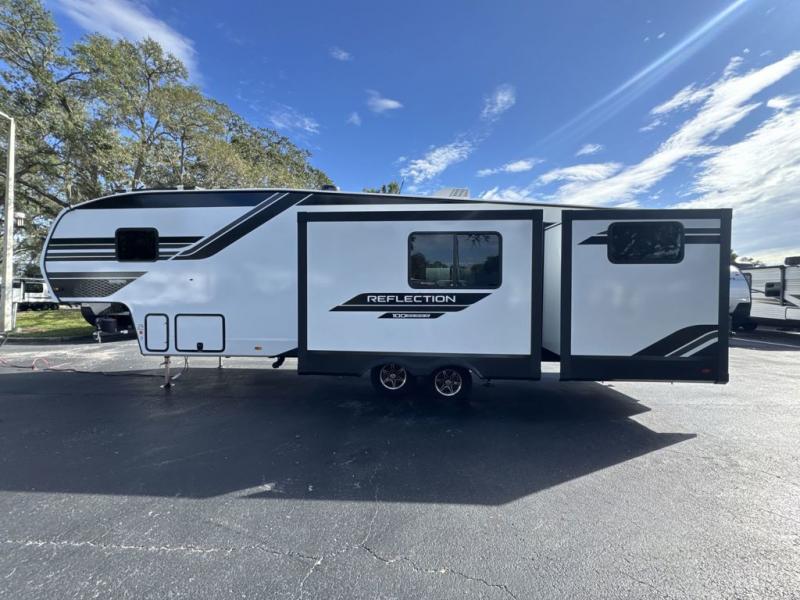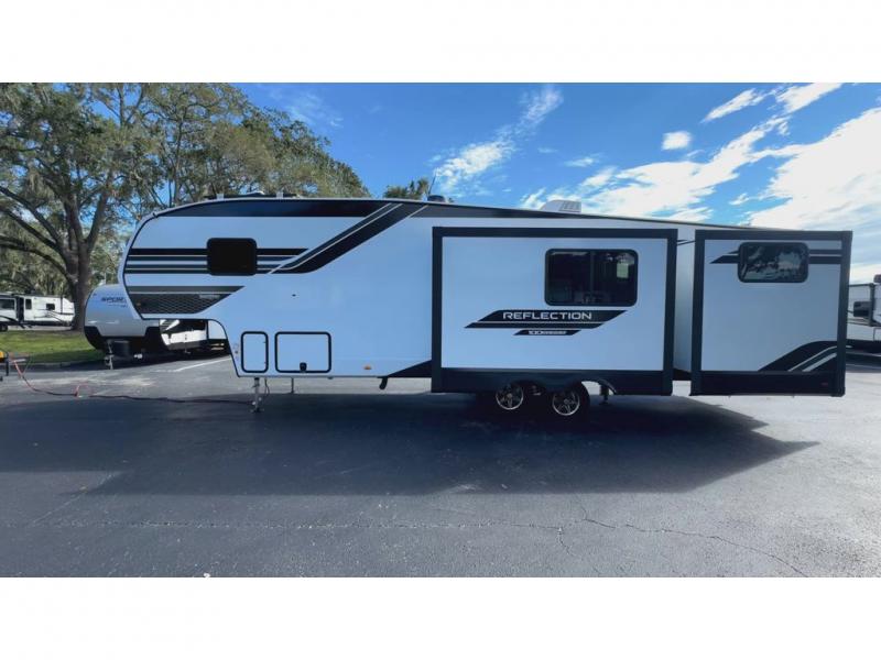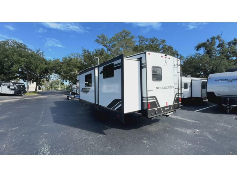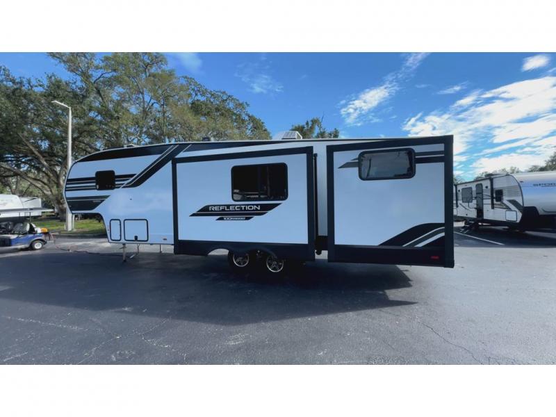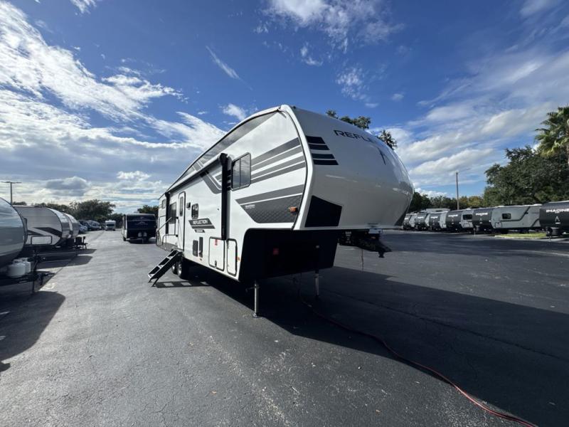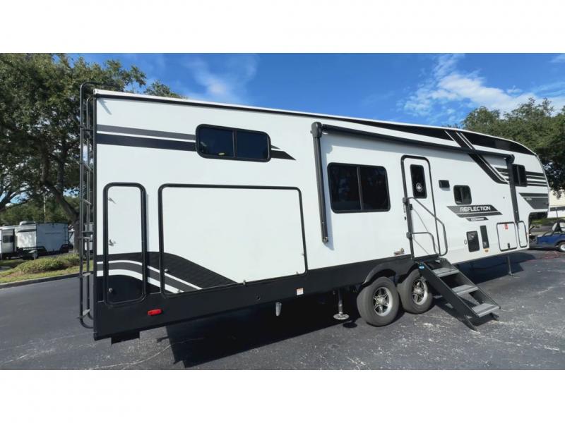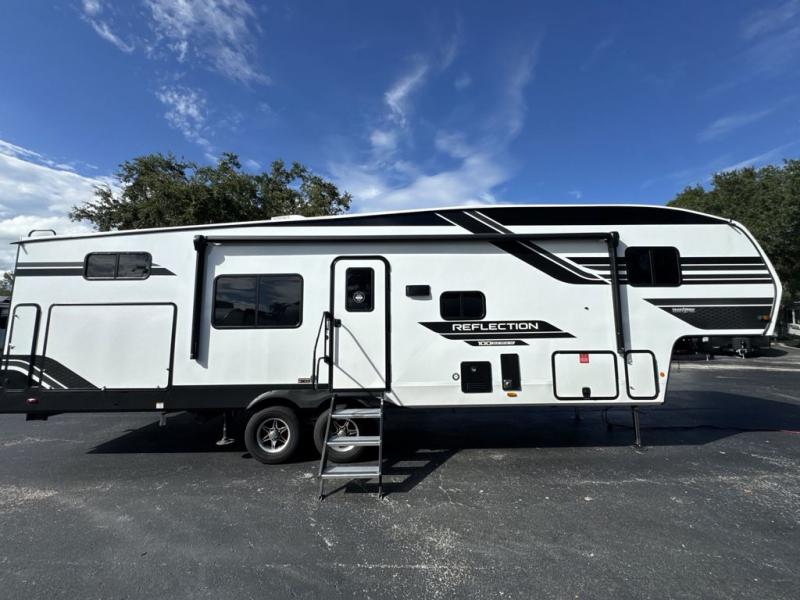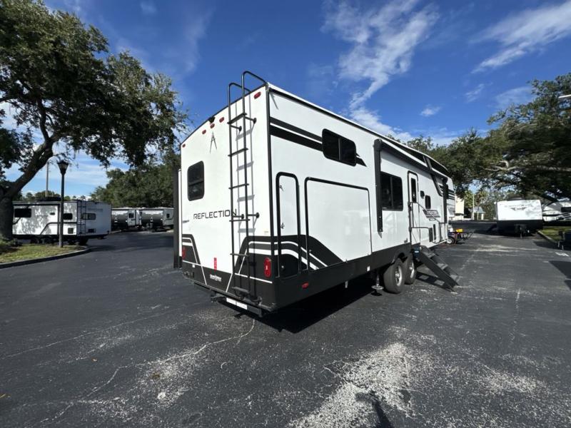 Each Reflection 100 Series fifth wheel by Grand Design is affordable and packed with luxury for unforgettable camping memories! The MorRyde CRE3000 suspension system and Goodyear Endurance tires will provide smooth towing from home to campground. And the solar package with a 180W solar panel, 60 Amp charge controller and 12V refrigerator will allow you to camp for longer periods of time and in more locations! A heated and enclosed underbelly with circulating heat is included in the Arctic 4-Seasons Protection Package, along with a double insulated roof and front cap, and thermofoil insulation under the holding tanks so you can camp all year long if you choose. You will appreciate having an on-demand water heater for hot showers after exploring, and the universal all-in-one docking station will let you monitor your RVs tanks levels and functions with ease. These models also include many luxurious interior features, such as premium Congoleum flooring, pleated shades, residential cabinetry, and matte black fixtures and hardware. Don't let the Reflection 100 Series fifth wheels pass you by!