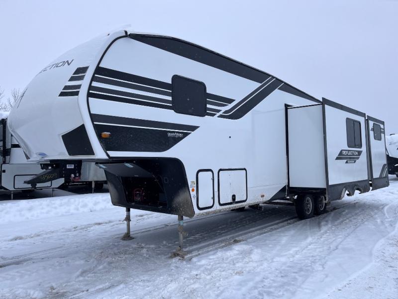Each Reflection 100 Series fifth wheel by Grand Design is affordable and packed with luxury for unforgettable camping memories! The MorRyde CRE3000 suspension system and Goodyear Endurance tires will provide smooth towing from home to campground. And the solar package with a 180W solar panel, 60 Amp charge controller and 12V refrigerator will allow you to camp for longer periods of time and in more locations! A heated and enclosed underbelly with circulating heat is included in the Arctic 4-Seasons Protection Package, along with a double insulated roof and front cap, and thermofoil insulation under the holding tanks so you can camp all year long if you choose. You will appreciate having an on-demand water heater for hot showers after exploring, and the universal all-in-one docking station will let you monitor your RVs tanks levels and functions with ease. These models also include many luxurious interior features, such as premium Congoleum flooring, pleated shades, residential cabinetry, and matte black fixtures and hardware. Don't let the Reflection 100 Series fifth wheels pass you by!