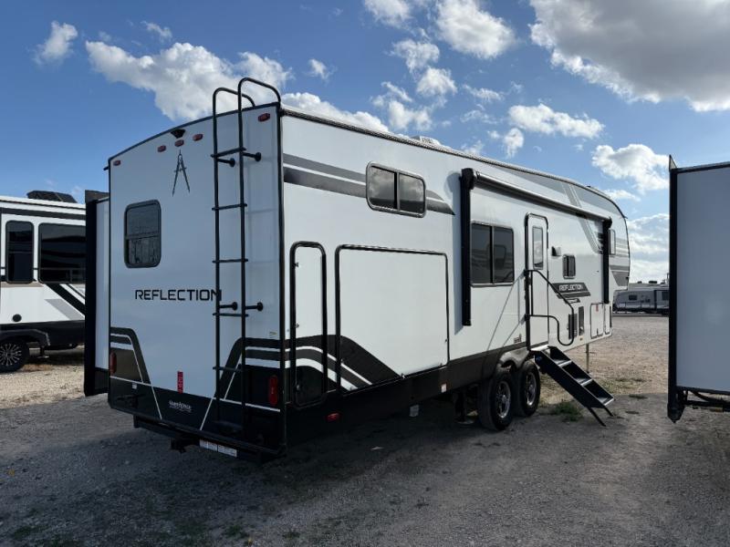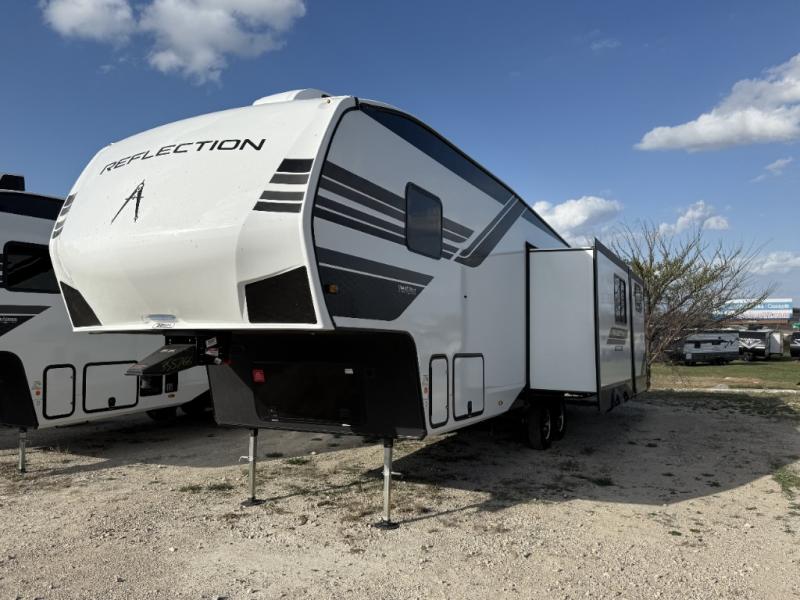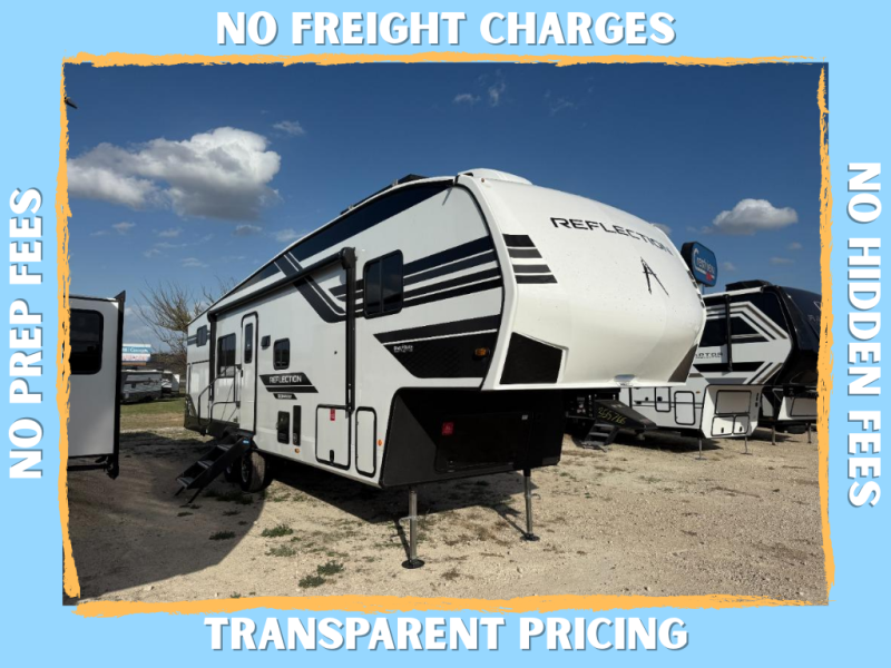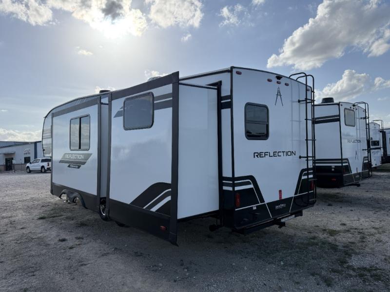 Each Reflection 100 Series fifth wheel by Grand Design is affordable and packed with luxury for unforgettable camping memories! The MorRyde CRE3000 suspension system and Goodyear Endurance tires will provide smooth towing from home to campground. And the solar package with a 180W solar panel, 60 Amp charge controller and 12V refrigerator will allow you to camp for longer periods of time and in more locations! A heated and enclosed underbelly with circulating heat is included in the Arctic 4-Seasons Protection Package, along with a double insulated roof and front cap, and thermofoil insulation under the holding tanks so you can camp all year long if you choose. You will appreciate having an on-demand water heater for hot showers after exploring, and the universal all-in-one docking station will let you monitor your RVs tanks levels and functions with ease. These models also include many luxurious interior features, such as premium Congoleum flooring, pleated shades, residential cabinetry, and matte black fixtures and hardware. Don't let the Reflection 100 Series fifth wheels pass you by!