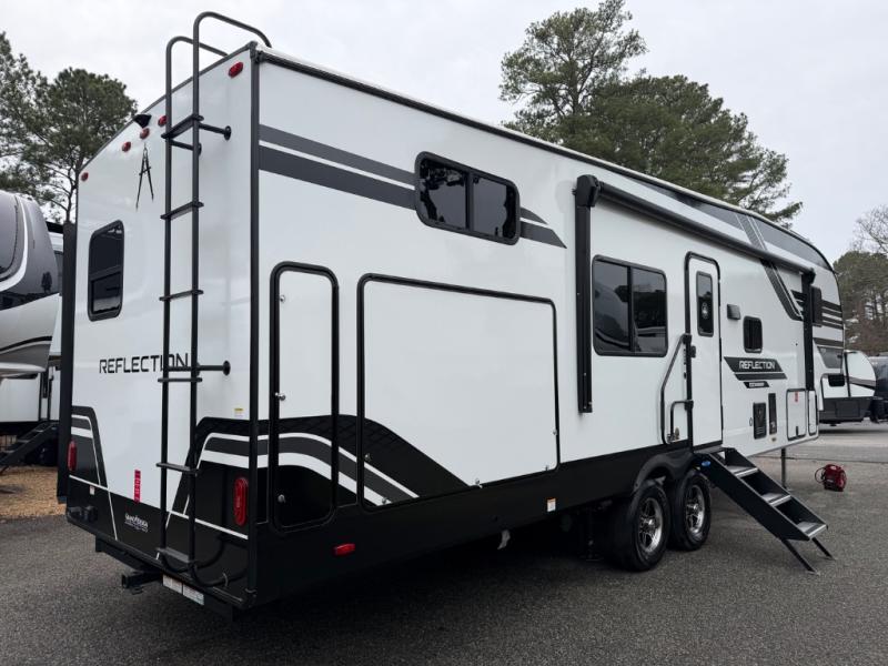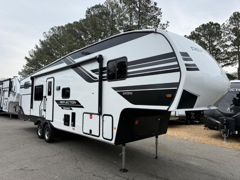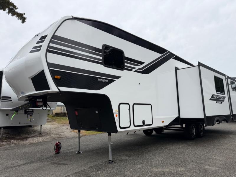 Each Reflection 100 Series fifth wheel by Grand Design is affordable and packed with luxury for unforgettable camping memories! The MorRyde CRE3000 suspension system and Goodyear Endurance tires will provide smooth towing from home to campground. And the solar package with a 180W solar panel, 60 Amp charge controller and 12V refrigerator will allow you to camp for longer periods of time and in more locations! A heated and enclosed underbelly with circulating heat is included in the Arctic 4-Seasons Protection Package, along with a double insulated roof and front cap, and thermofoil insulation under the holding tanks so you can camp all year long if you choose. You will appreciate having an on-demand water heater for hot showers after exploring, and the universal all-in-one docking station will let you monitor your RVs tanks levels and functions with ease. These models also include many luxurious interior features, such as premium Congoleum flooring, pleated shades, residential cabinetry, and matte black fixtures and hardware. Don't let the Reflection 100 Series fifth wheels pass you by!