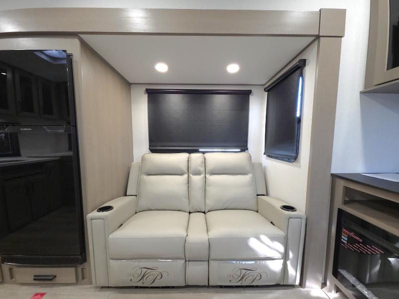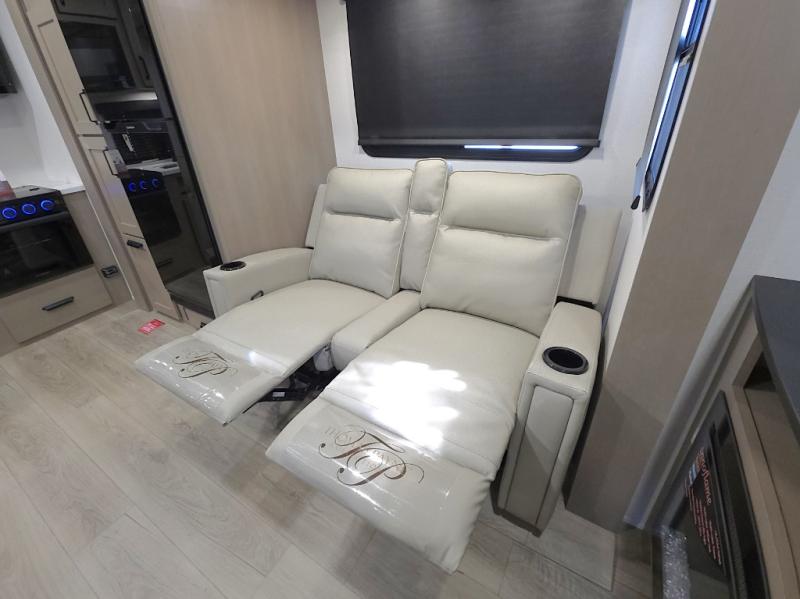 Theater seating in the slide out creates a relaxing space to unwind