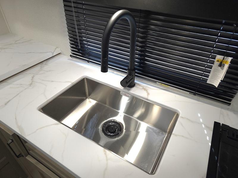 Deep stainless steel sink, ample cabinetry, and a 30 inch microwave enhance kitchen functionality