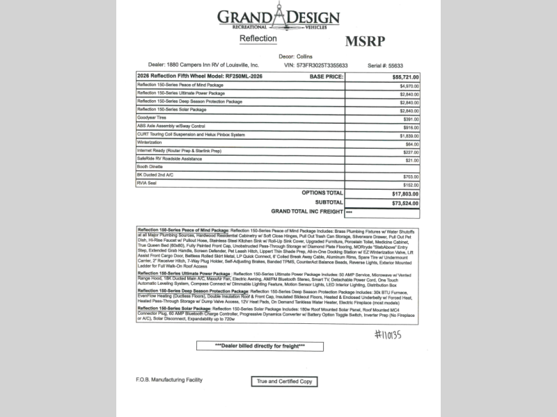Our Louisville location offers a wide selection of Grand Design fifth wheels, competitive financing options, and a full-service parts and service department to support you long after your purchase. When you choose Campers Inn RV of Louisville, you are choosing a trusted partner dedicated to helping you enjoy every adventure.