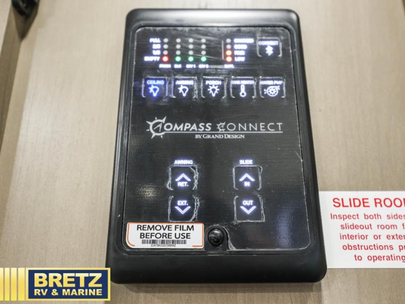 With any Reflection 150 Series fifth wheel by Grand Design, there is more available payload capacity and a broader range of half-ton trucks capable of towing this fifth wheel, and no slider hitch is needed thanks to the 90-degree turning radius which makes them short bed friendly and easier to tow. The mandatory Ultimate Power package provides a "One-Touch" automatic leveling system and a detachable power cord with LED light for easy setup, plus motion sensor pass-through lighting and entry lighting, and the Tire Linc TPMS will help you stay safe on the road. The interior offers residential cabinetry and premium Congoleum flooring, to the booth dinette and residential-style window treatment. Make your refined decision today!