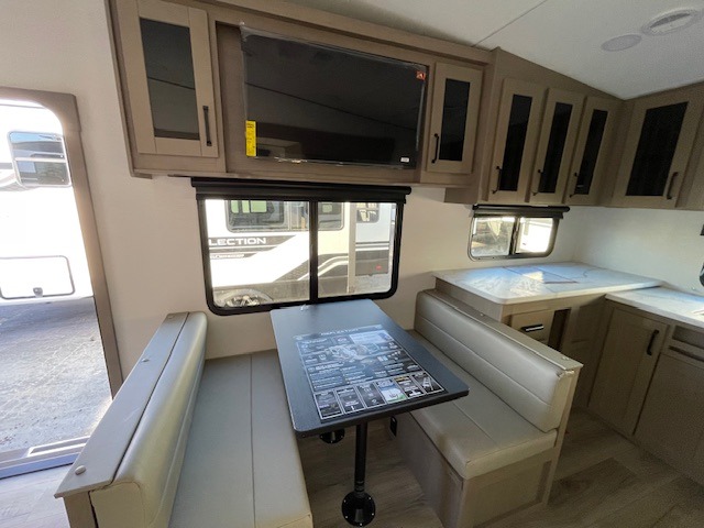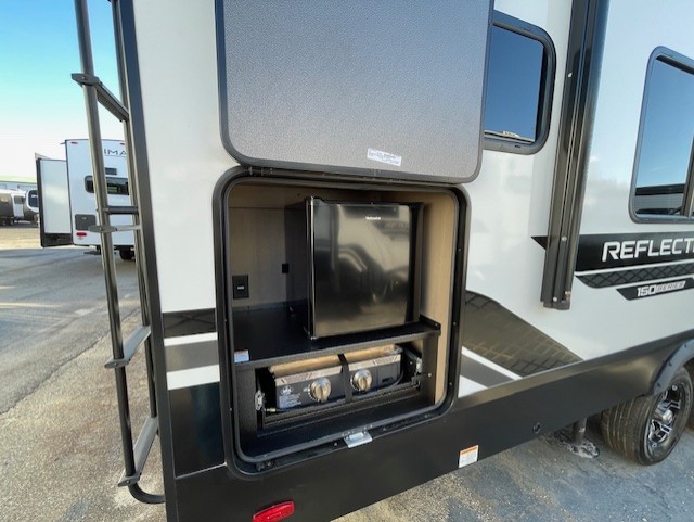 With any Reflection 150 Series fifth wheel by Grand Design, there is more available payload capacity and a broader range of half-ton trucks capable of towing this fifth wheel, and no slider hitch is needed thanks to the 90-degree turning radius which makes them short bed friendly and easier to tow. The mandatory Ultimate Power package provides a "One-Touch" automatic leveling system and a detachable power cord with LED light for easy setup, plus motion sensor pass-through lighting and entry lighting, and the Tire Linc TPMS will help you stay safe on the road. The interior offers residential cabinetry and premium Congoleum flooring, to the booth dinette and residential-style window treatment. Make your refined decision today!