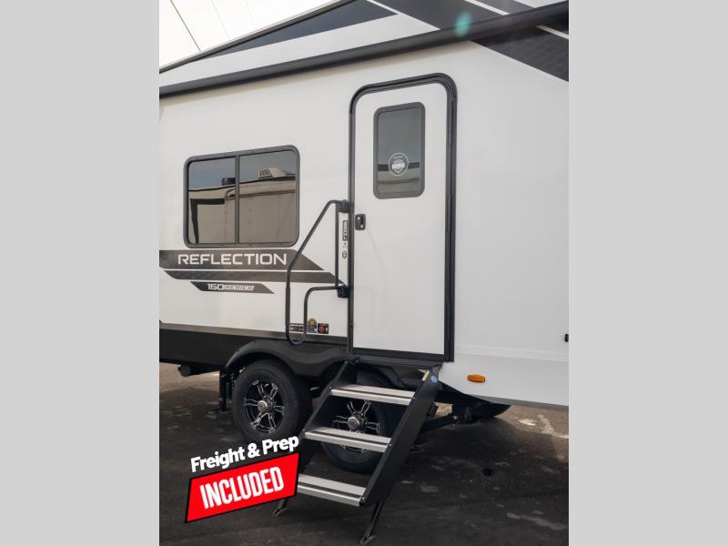With any Reflection 150 Series fifth wheel by Grand Design, there is more available payload capacity and a broader range of half-ton trucks capable of towing this fifth wheel, and no slider hitch is needed thanks to the 90-degree turning radius which makes them short bed friendly and easier to tow. The mandatory Ultimate Power package provides a "One-Touch" automatic leveling system and a detachable power cord with LED light for easy setup, plus motion sensor pass-through lighting and entry lighting, and the Tire Linc TPMS will help you stay safe on the road. The interior offers residential cabinetry and premium Congoleum flooring, to the booth dinette and residential-style window treatment. Make your refined decision today!
