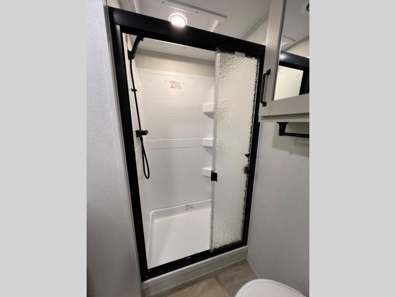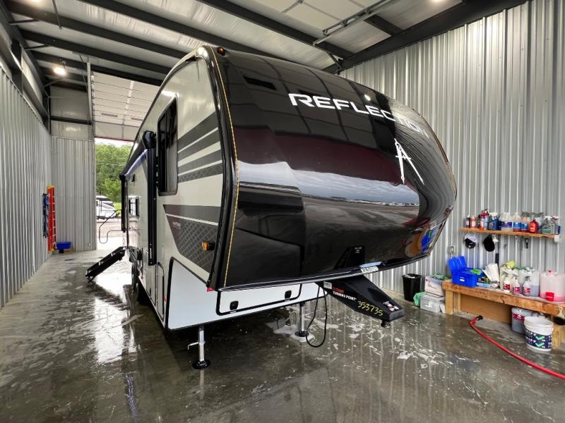 Feel right at home in this Reflection 150 Series with a private bedroom that includes a walk-around queen bed with storage on each side, windows, and a space savings sliding door. The full bathroom offers a walk-in shower, storage for your linens and a sliding door for easy access. When you get hungry, the cook will have an L-shaped kitchen area to make meals, plus full amenities including a 30" microwave, a flip-up counter extension, a pantry for your dry goods and a 16 cu. ft. refrigerator to store lots of food and cold beverages. You can dine at the rear U-shaped dinette lounge and enjoy the view out of all the windows or outside under the 18' electric awning. And the 78" theatre seating will be a nice place to relax and watch the 40" LED HDTV.