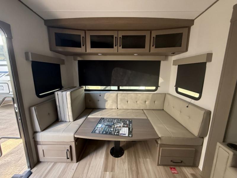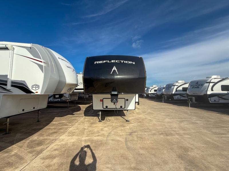With any Reflection 150 Series fifth wheel by Grand Design, there is more available payload capacity and a broader range of half-ton trucks capable of towing this fifth wheel, and no slider hitch is needed thanks to the 90-degree turning radius which makes them short bed friendly and easier to tow. The mandatory Ultimate Power package provides a "One-Touch" automatic leveling system and a detachable power cord with LED light for easy setup, plus motion sensor pass-through lighting and entry lighting, and the Tire Linc TPMS will help you stay safe on the road. The interior offers residential cabinetry and premium Congoleum flooring, to the booth dinette and residential-style window treatment. Make your refined decision today!