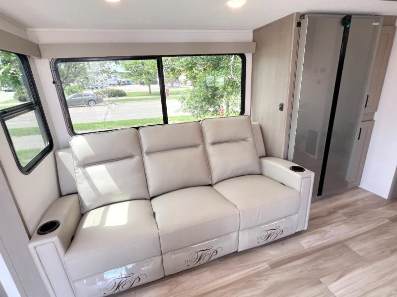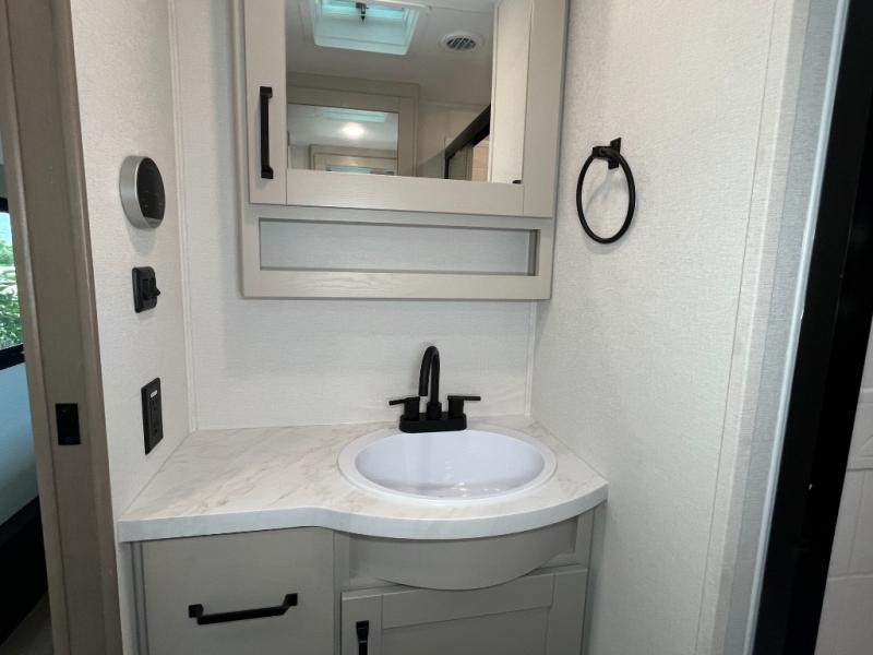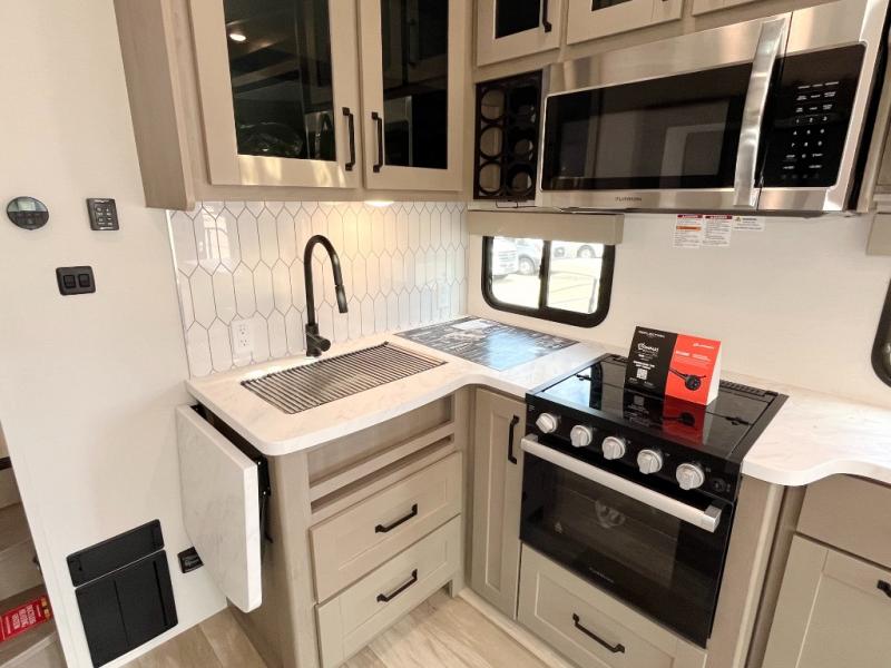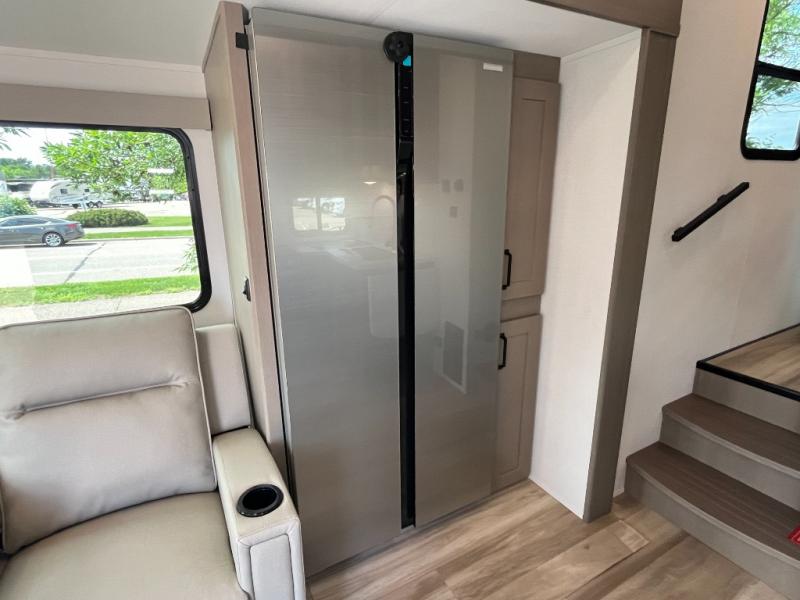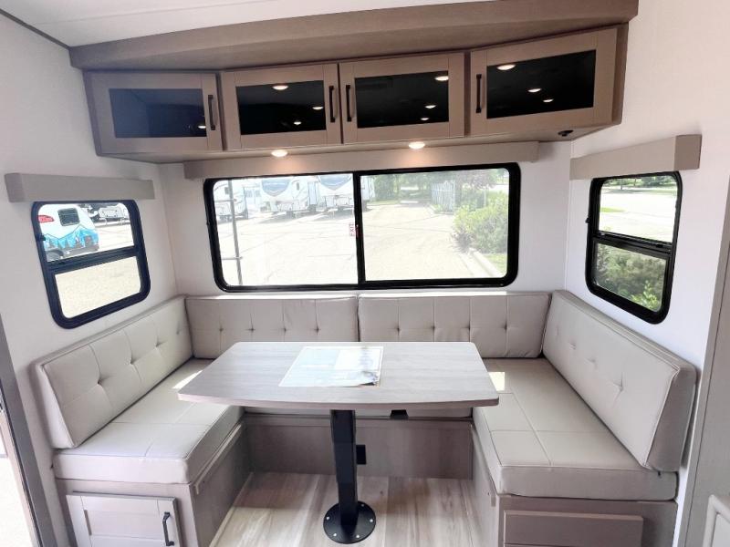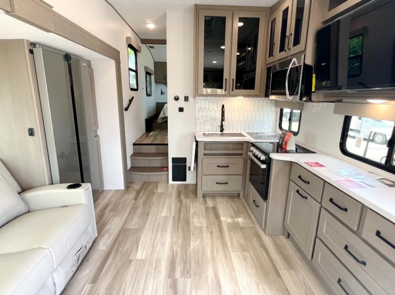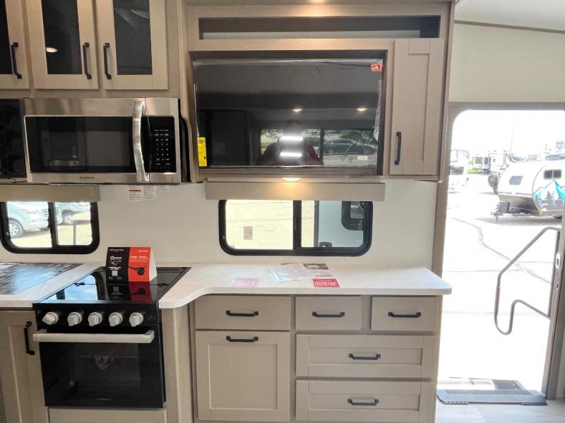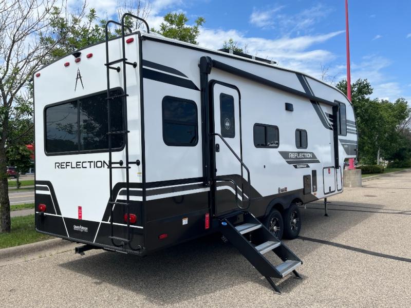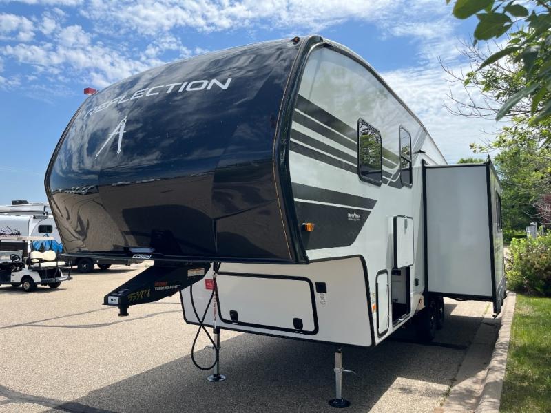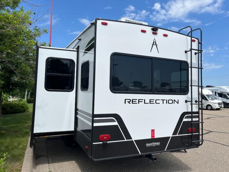 With any Reflection 150 Series fifth wheel by Grand Design, there is more available payload capacity and a broader range of half-ton trucks capable of towing this fifth wheel, and no slider hitch is needed thanks to the 90-degree turning radius which makes them short bed friendly and easier to tow. The mandatory Ultimate Power package provides a "One-Touch" automatic leveling system and a detachable power cord with LED light for easy setup, plus motion sensor pass-through lighting and entry lighting, and the Tire Linc TPMS will help you stay safe on the road. The interior offers residential luxury from the cabinetry and premium Congoleum flooring, to the booth dinette and residential-style window treatment. Make your refined decision today!