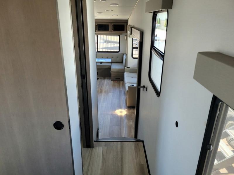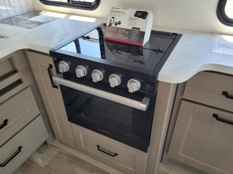 With any Reflection 150 Series fifth wheel by Grand Design, there is more available payload capacity and a broader range of half-ton trucks capable of towing this fifth wheel, and no slider hitch is needed thanks to the 90-degree turning radius which makes them short bed friendly and easier to tow. The mandatory Ultimate Power package provides a "One-Touch" automatic leveling system and a detachable power cord with LED light for easy setup, plus motion sensor pass-through lighting and entry lighting, and the Tire Linc TPMS will help you stay safe on the road. The interior offers residential luxury from the cabinetry and premium Congoleum flooring, to the booth dinette and residential-style window treatment. Make your refined decision today!