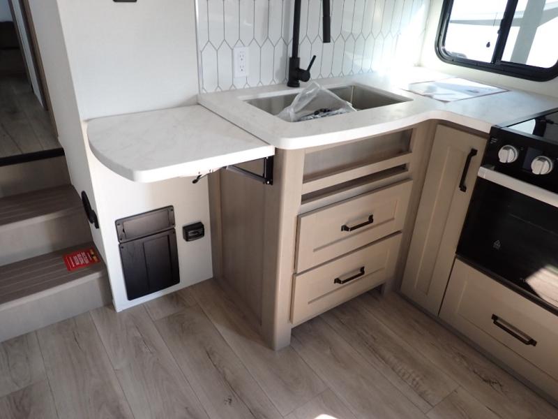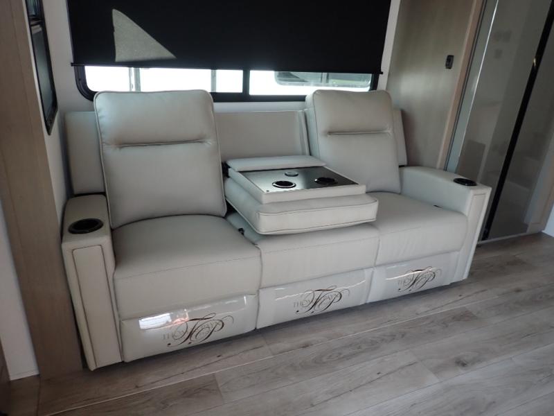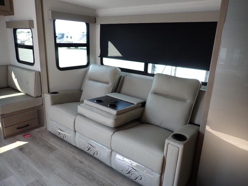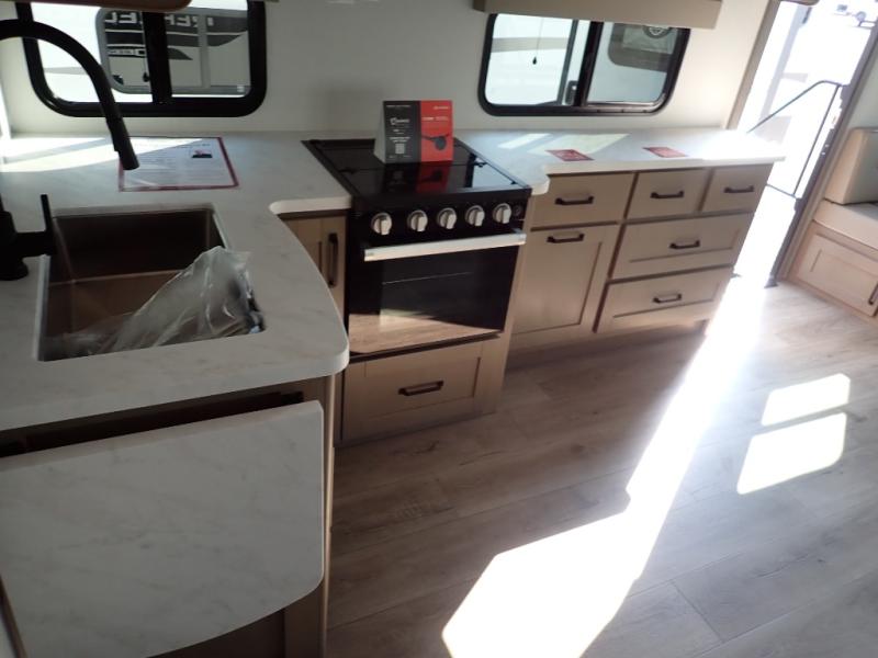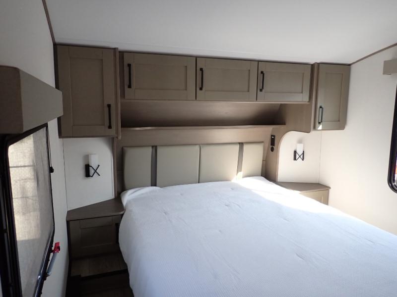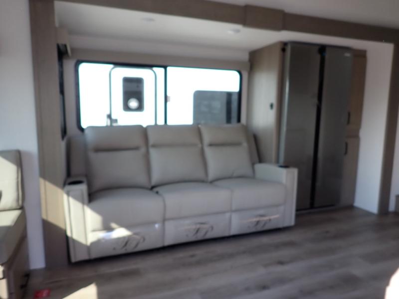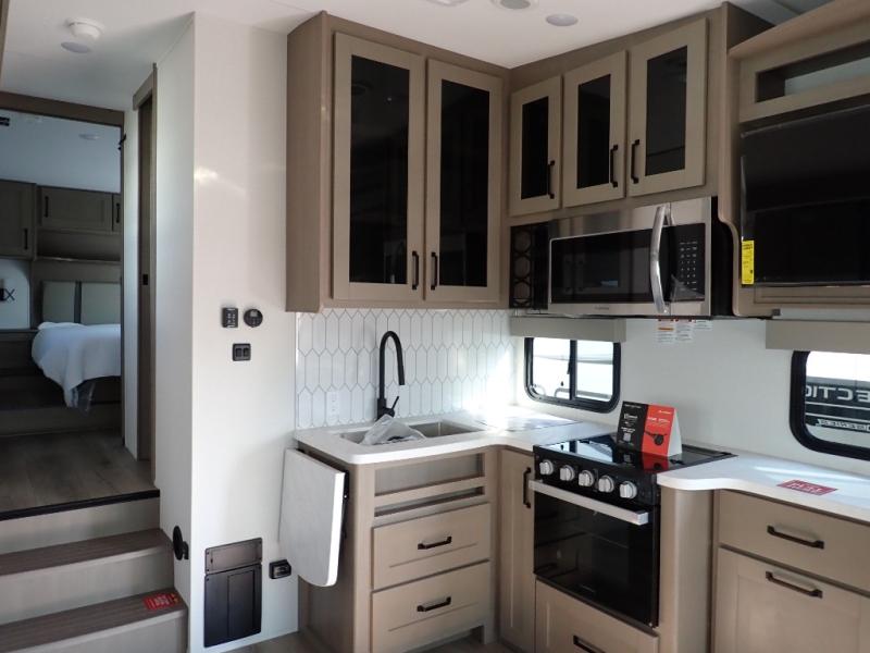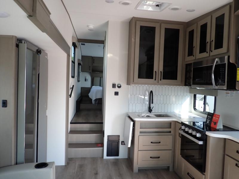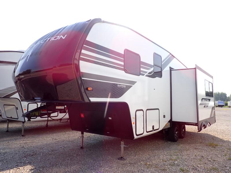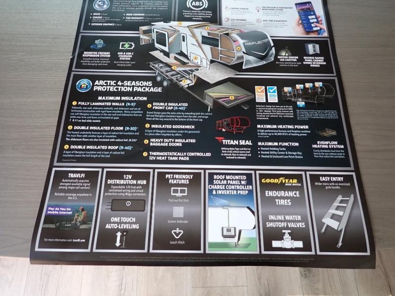 With any Reflection 150 Series fifth wheel by Grand Design, there is more available payload capacity and a broader range of half-ton trucks capable of towing this fifth wheel, and no slider hitch is needed thanks to the 90-degree turning radius which makes them short bed friendly and easier to tow. The mandatory Ultimate Power package provides a "One-Touch" automatic leveling system and a detachable power cord with LED light for easy setup, plus motion sensor pass-through lighting and entry lighting, and the Tire Linc TPMS will help you stay safe on the road. The interior offers residential luxury from the cabinetry and premium Congoleum flooring, to the booth dinette and residential-style window treatment. Make your refined decision today!