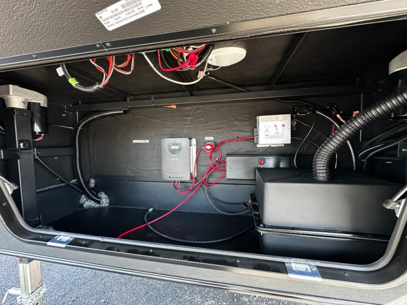 The main living area is open and inviting, with panoramic windows that bring in natural light and create a bright, airy environment. The open floorplan allows for easy movement throughout the trailer, making even extended stays feel comfortable and spacious.