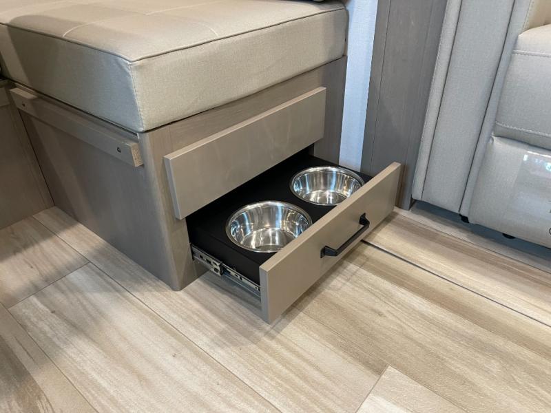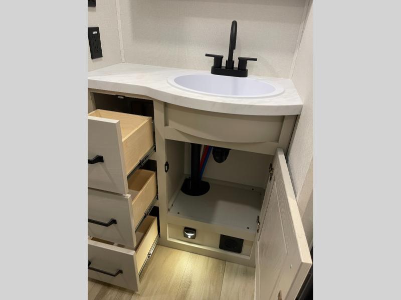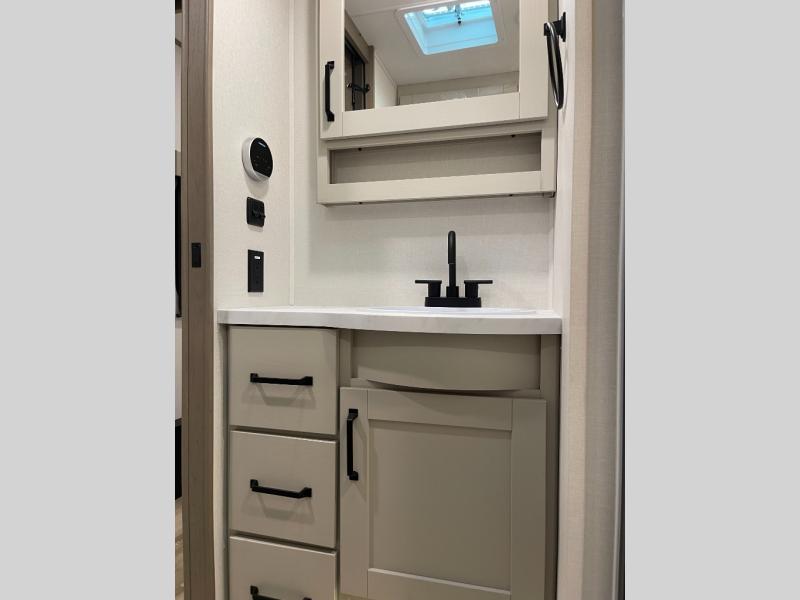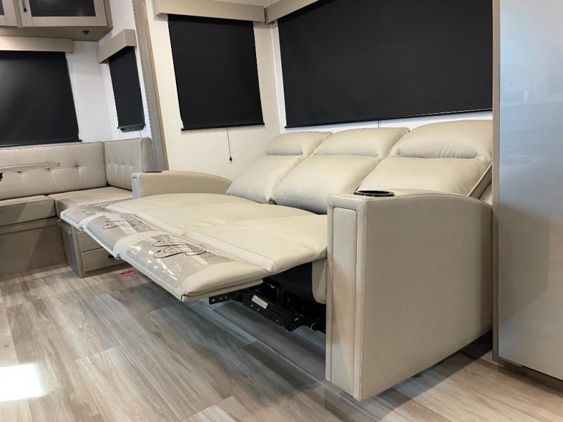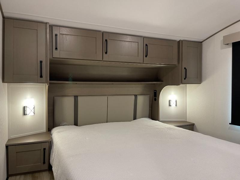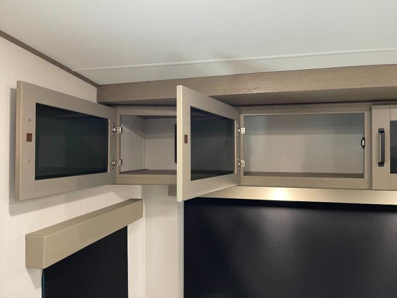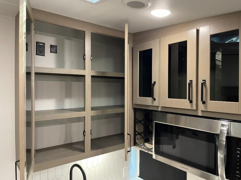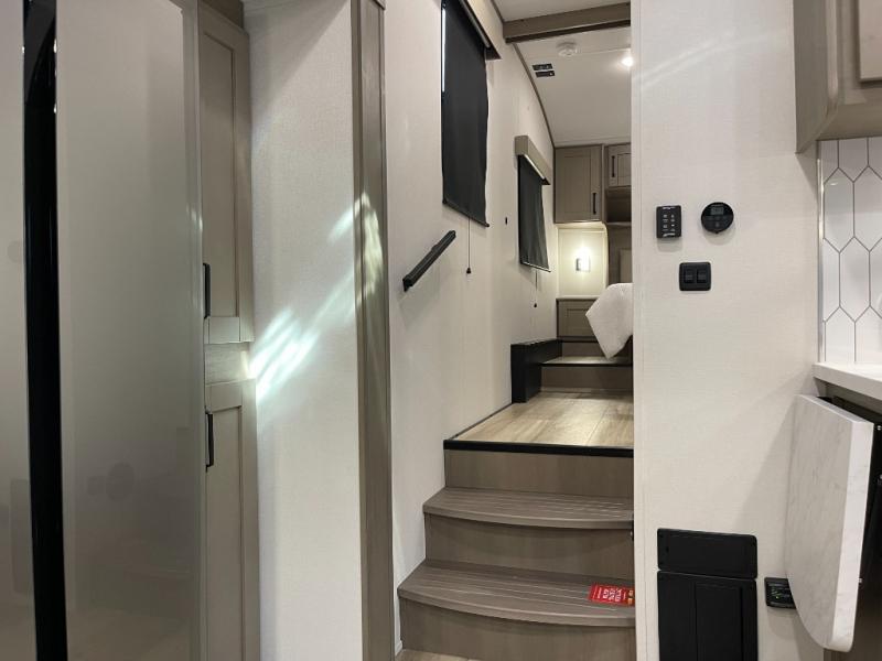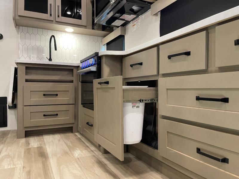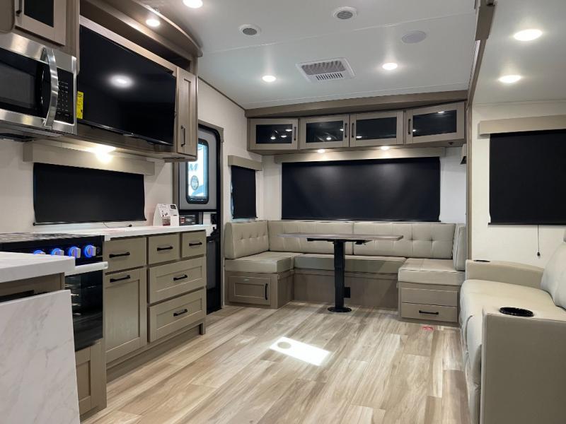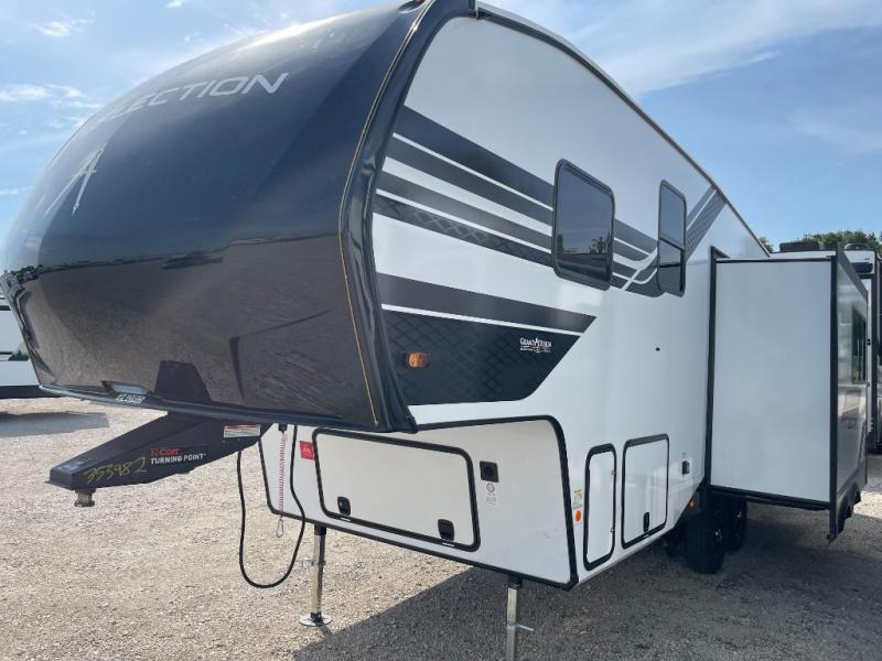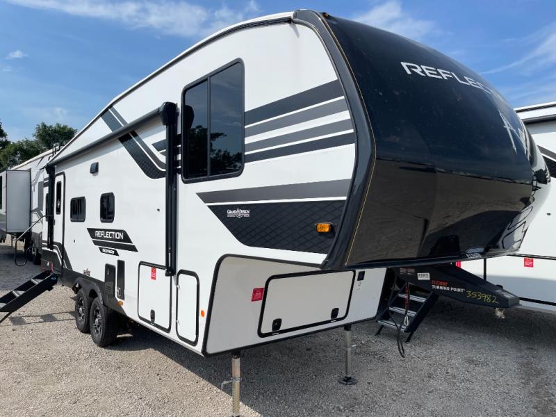 With any Reflection 150 Series fifth wheel by Grand Design, there is more available payload capacity and a broader range of half-ton trucks capable of towing this fifth wheel, and no slider hitch is needed thanks to the 90-degree turning radius which makes them short bed friendly and easier to tow. The mandatory Ultimate Power package provides a "One-Touch" automatic leveling system and a detachable power cord with LED light for easy setup, plus motion sensor pass-through lighting and entry lighting, and the Tire Linc TPMS will help you stay safe on the road. The interior offers residential luxury from the cabinetry and premium Congoleum flooring, to the booth dinette and residential-style window treatment. Make your refined decision today!