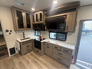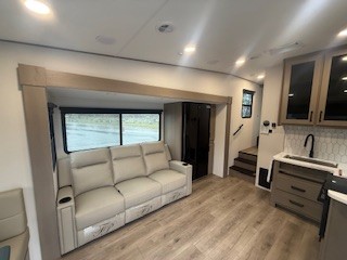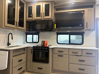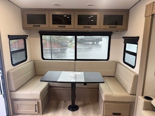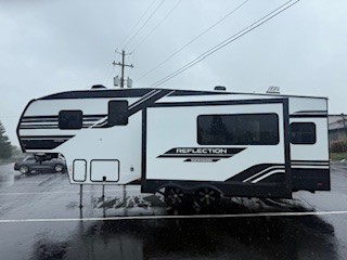 With any Reflection 150 Series fifth wheel by Grand Design, there is more available payload capacity and a broader range of half-ton trucks capable of towing this fifth wheel, and no slider hitch is needed thanks to the 90-degree turning radius which makes them short bed friendly and easier to tow. The mandatory Ultimate Power package provides a "One-Touch" automatic leveling system and a detachable power cord with LED light for easy setup, plus motion sensor pass-through lighting and entry lighting, and the Tire Linc TPMS will help you stay safe on the road. The interior offers residential luxury from the cabinetry and premium Congoleum flooring, to the booth dinette and residential-style window treatment. Make your refined decision today!