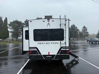 Feel right at home in this Reflection 150 Series with a private bedroom that includes a walk-around queen bed with storage on each side, windows, and a space savings sliding door. The full bathroom offers a walk-in shower, storage for your linens and a sliding door for easy access. When you get hungry, the cook will have an L-shaped kitchen area to make meals, plus full amenities including a 30" microwave, a flip-up counter extension, a pantry for your dry goods and a 16 cu. ft. refrigerator to store lots of food and cold beverages. You can dine at the rear U-shaped dinette lounge and enjoy the view out of all the windows or outside under the 18' electric awning. And the 78" theatre seating will be a nice place to relax and watch the 40" LED HDTV.