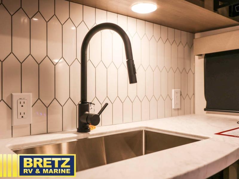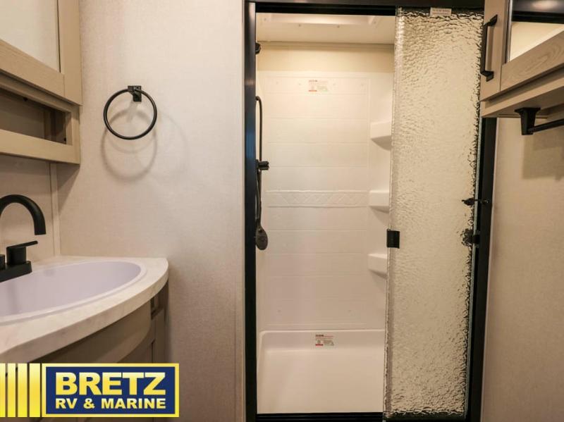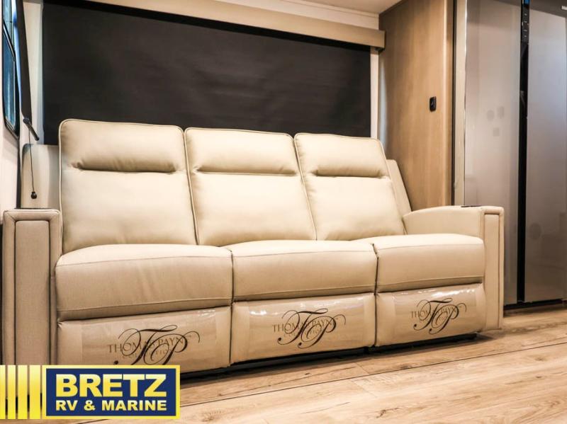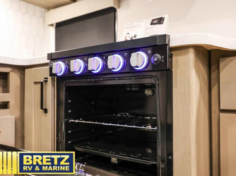 With any Reflection 150 Series fifth wheel by Grand Design, there is more available payload capacity and a broader range of half-ton trucks capable of towing this fifth wheel, and no slider hitch is needed thanks to the 90-degree turning radius which makes them short bed friendly and easier to tow. The mandatory Ultimate Power package provides a "One-Touch" automatic leveling system and a detachable power cord with LED light for easy setup, plus motion sensor pass-through lighting and entry lighting, and the Tire Linc TPMS will help you stay safe on the road. The interior offers residential luxury from the cabinetry and premium Congoleum flooring, to the booth dinette and residential-style window treatment. Make your refined decision today!