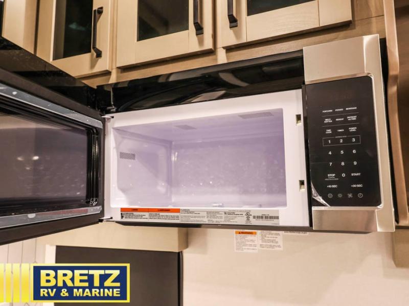 Feel right at home in this Reflection 150 Series with a private bedroom that includes a walk-around queen bed with storage on each side, windows, and a space savings sliding door. The full bathroom offers a walk-in shower, storage for your linens and a sliding door for easy access. When you get hungry, the cook will have an L-shaped kitchen area to make meals, plus full amenities including a 30" microwave, a flip-up counter extension, a pantry for your dry goods and a 16 cu. ft. refrigerator to store lots of food and cold beverages. You can dine at the rear U-shaped dinette lounge and enjoy the view out of all the windows or outside under the 18' electric awning. And the 78" theatre seating will be a nice place to relax and watch the 40" LED HDTV.