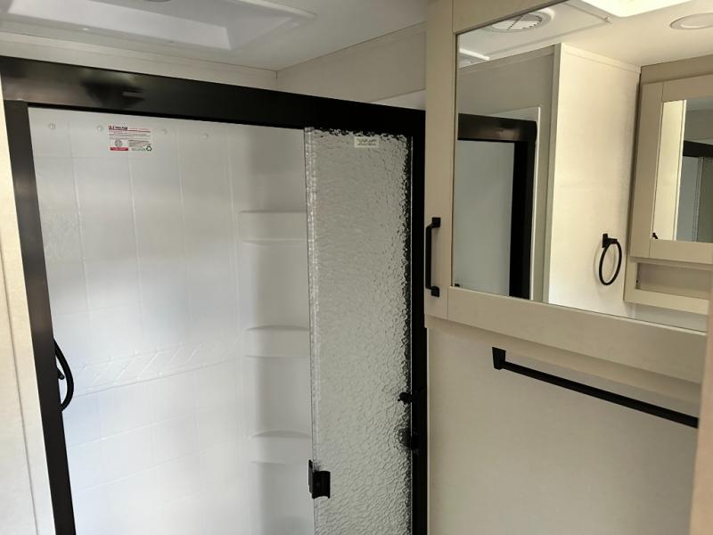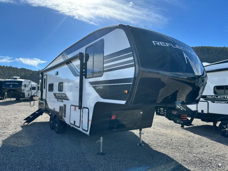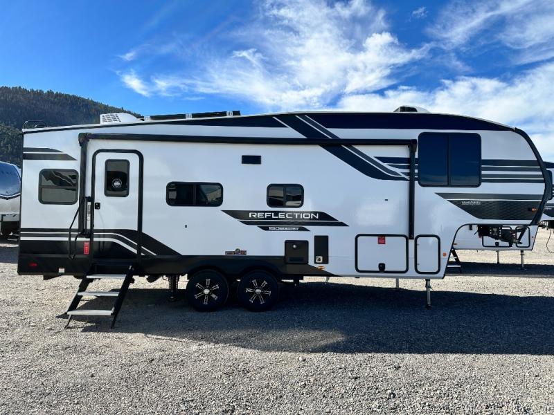 Feel right at home in this Reflection 150 Series with a private bedroom that includes a walk-around queen bed with storage on each side, windows, and a space savings sliding door. The full bathroom offers a walk-in shower, storage for your linens and a sliding door for easy access. When you get hungry, the cook will have an L-shaped kitchen area to make meals, plus full amenities including a 30" microwave, a flip-up counter extension, a pantry for your dry goods and a 16 cu. ft. refrigerator to store lots of food and cold beverages. You can dine at the rear U-shaped dinette lounge and enjoy the view out of all the windows or outside under the 18' electric awning. And the 78" theatre seating will be a nice place to relax and watch the 40" LED HDTV.