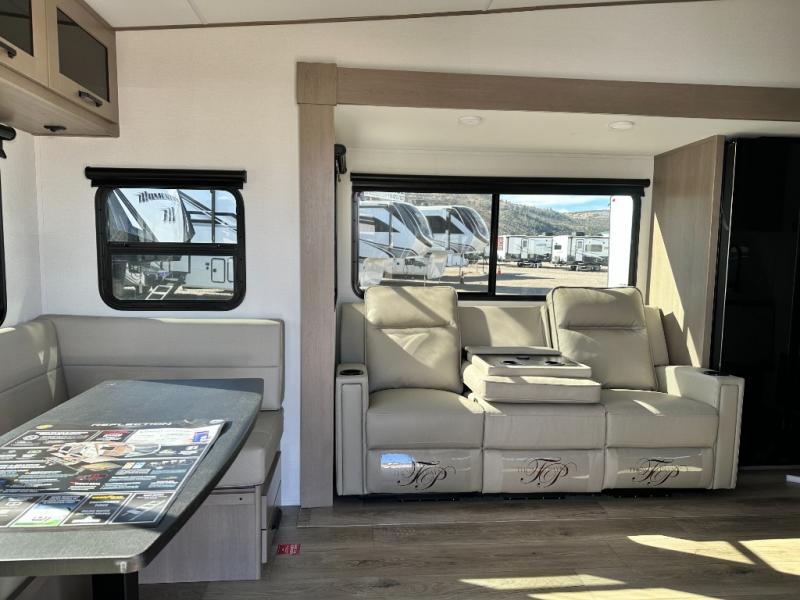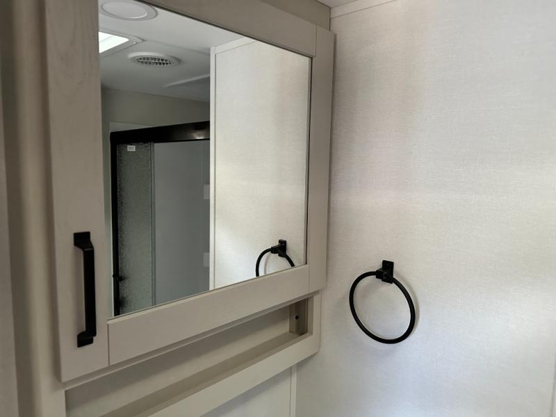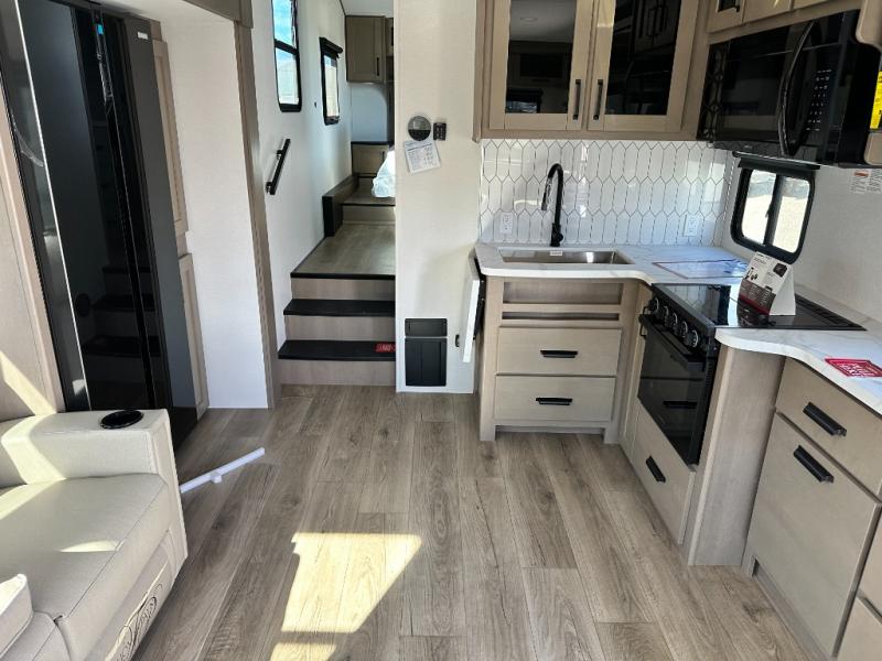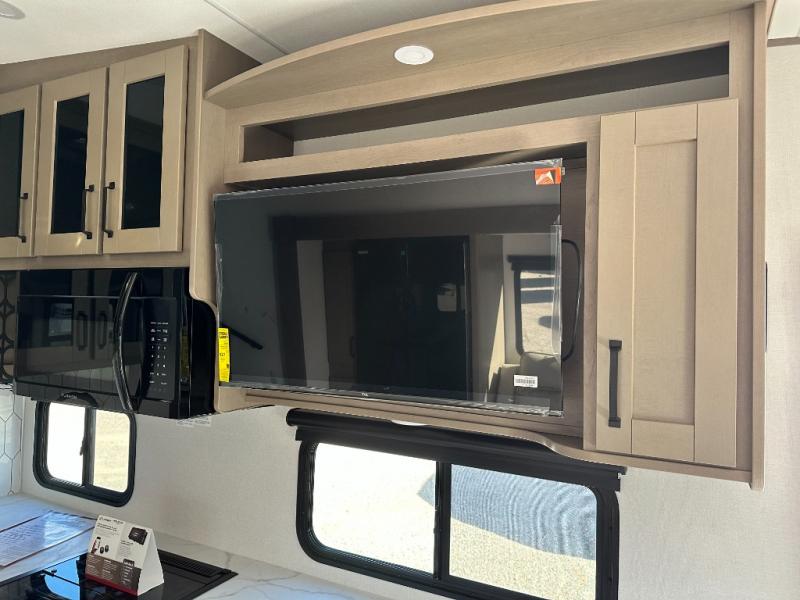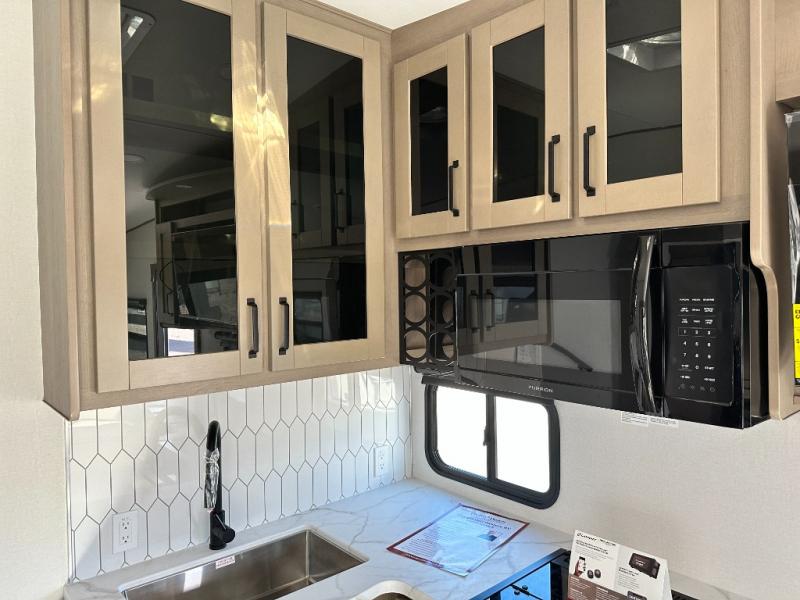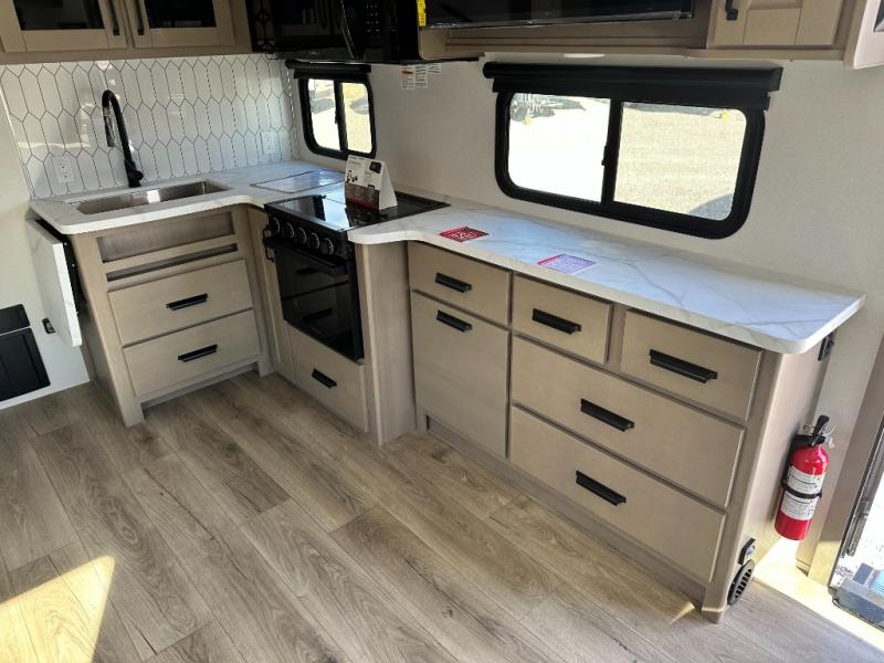 With any Reflection 150 Series fifth wheel by Grand Design, there is more available payload capacity and a broader range of half-ton trucks capable of towing this fifth wheel, and no slider hitch is needed thanks to the 90-degree turning radius which makes them short bed friendly and easier to tow. The mandatory Ultimate Power package provides a "One-Touch" automatic leveling system and a detachable power cord with LED light for easy setup, plus motion sensor pass-through lighting and entry lighting, and the Tire Linc TPMS will help you stay safe on the road. The interior offers residential luxury from the cabinetry and premium Congoleum flooring, to the booth dinette and residential-style window treatment. Make your refined decision today!