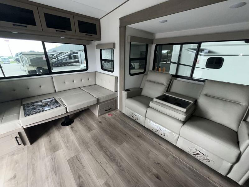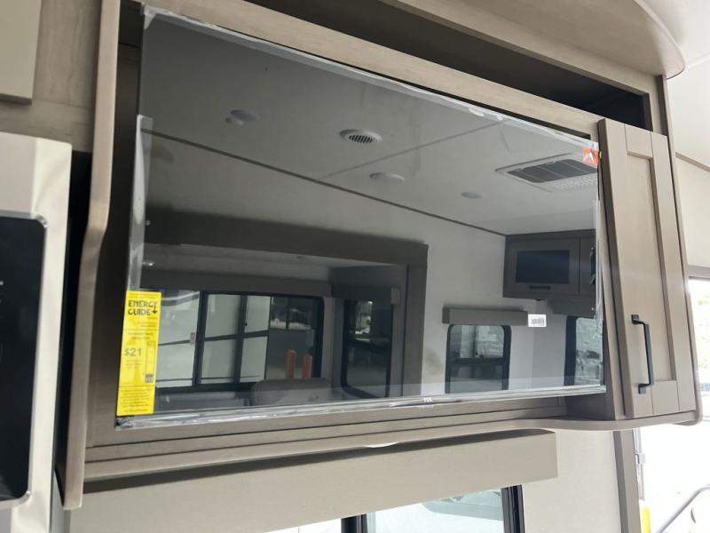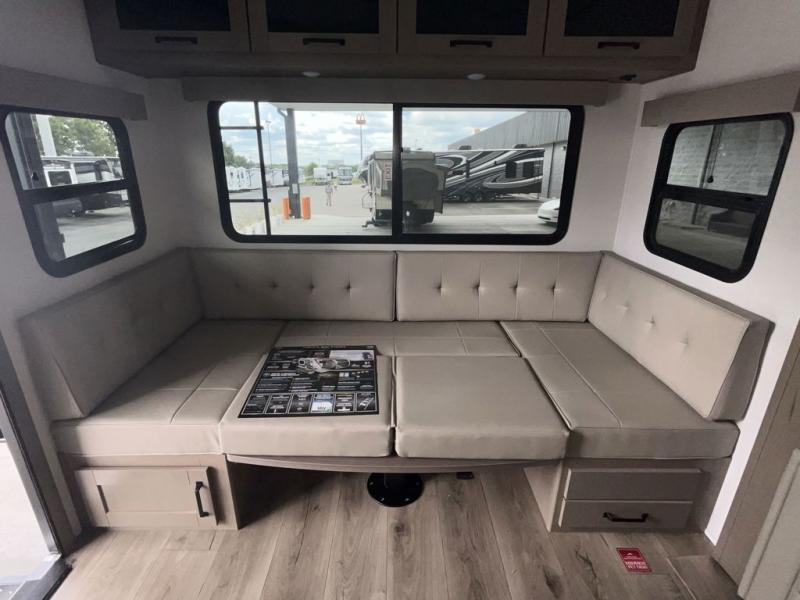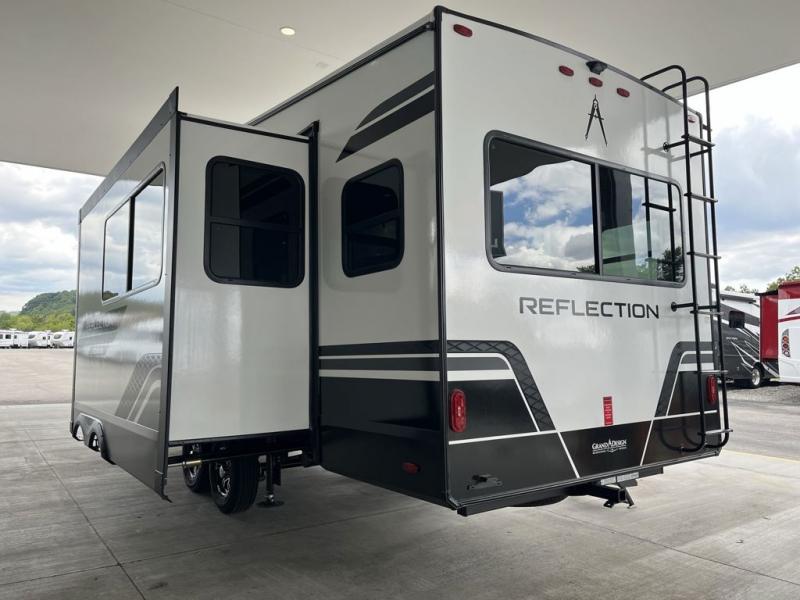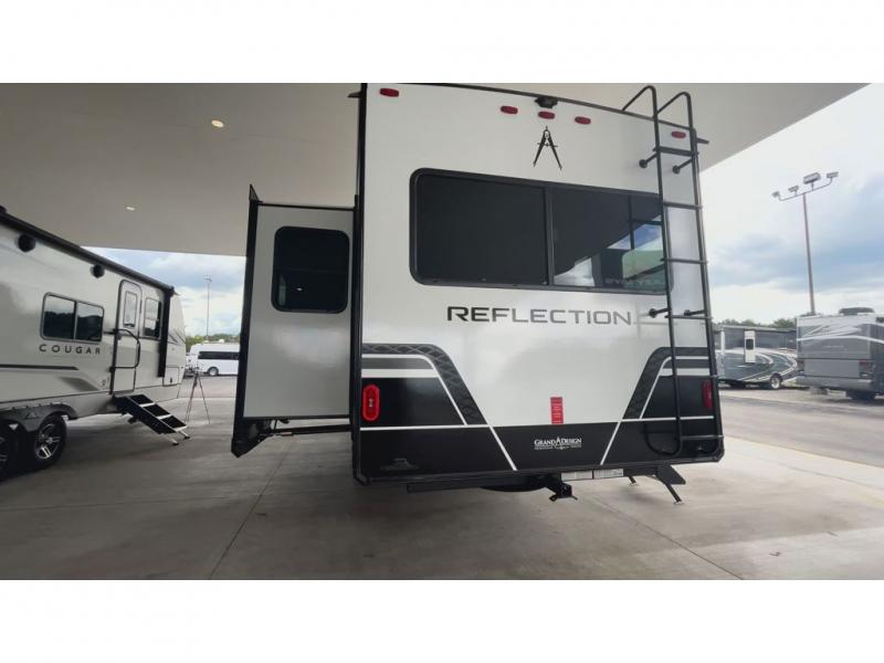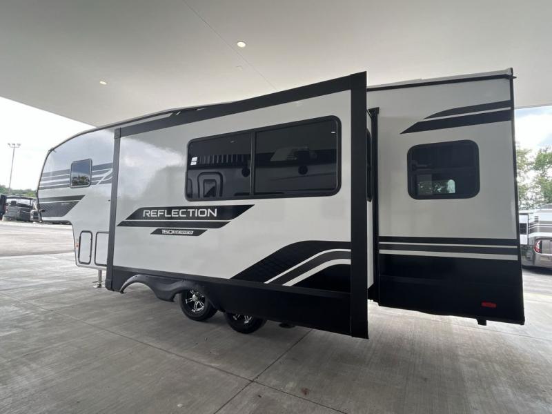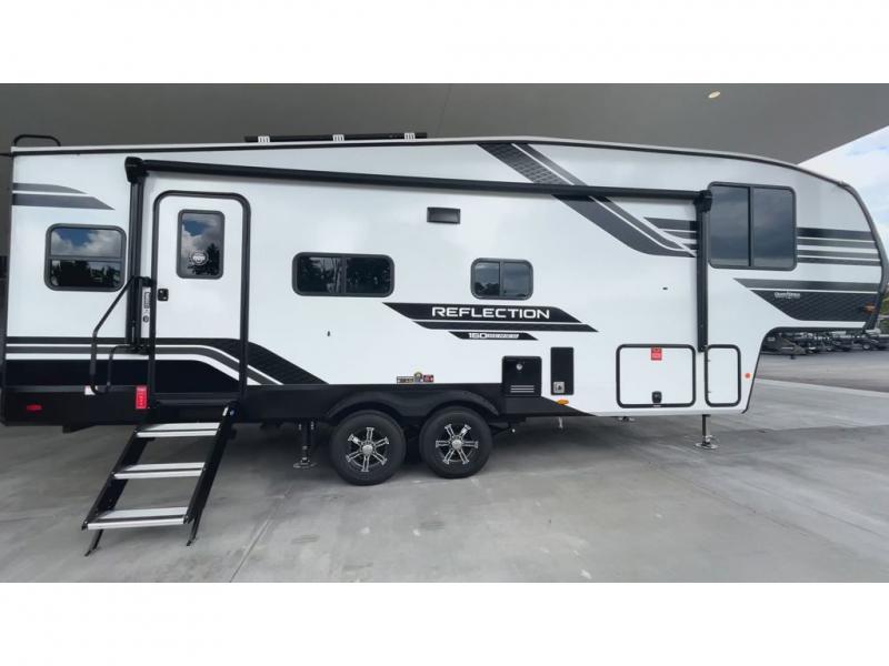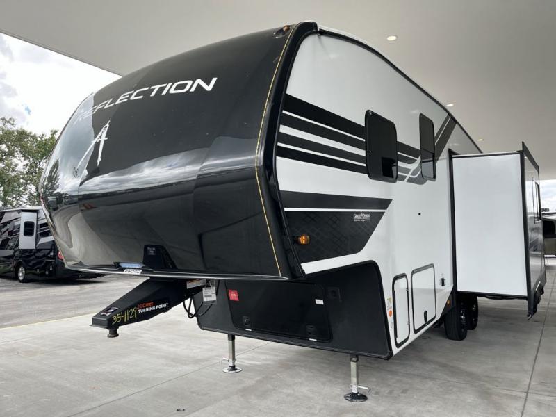 With any Reflection 150 Series fifth wheel by Grand Design, there is more available payload capacity and a broader range of half-ton trucks capable of towing this fifth wheel, and no slider hitch is needed thanks to the 90-degree turning radius which makes them short bed friendly and easier to tow. The mandatory Ultimate Power package provides a "One-Touch" automatic leveling system and a detachable power cord with LED light for easy setup, plus motion sensor pass-through lighting and entry lighting, and the Tire Linc TPMS will help you stay safe on the road. The interior offers residential cabinetry and premium Congoleum flooring, to the booth dinette and residential-style window treatment. Make your refined decision today!