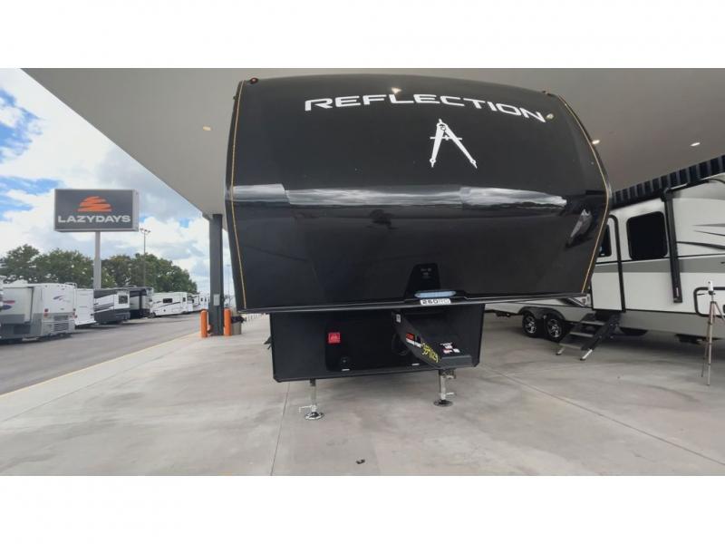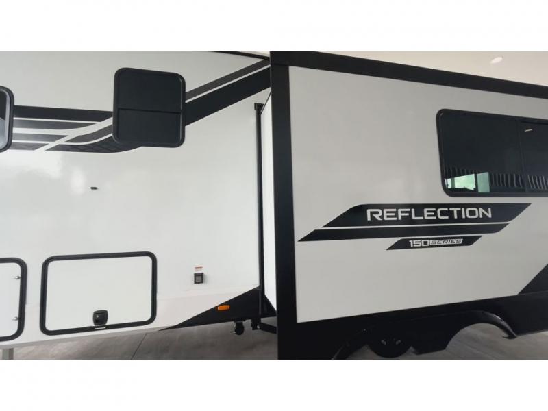 Feel right at home in this Reflection 150 Series with a private bedroom that includes a walk-around queen bed with storage on each side, windows, and a space savings sliding door. The full bathroom offers a walk-in shower, storage for your linens and a sliding door for easy access. When you get hungry, the cook will have an L-shaped kitchen area to make meals, plus full amenities including a 30" microwave, a flip-up counter extension, a pantry for your dry goods and a 16 cu. ft. refrigerator to store lots of food and cold beverages. You can dine at the rear U-shaped dinette lounge and enjoy the view out of all the windows or outside under the 18' electric awning. And the 78" theatre seating will be a nice place to relax and watch the 40" LED HDTV.