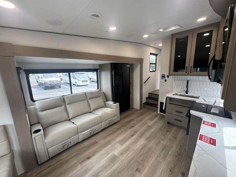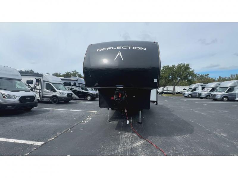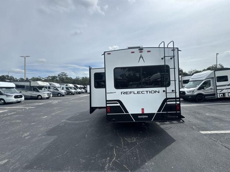 With any Reflection 150 Series fifth wheel by Grand Design, there is more available payload capacity and a broader range of half-ton trucks capable of towing this fifth wheel, and no slider hitch is needed thanks to the 90-degree turning radius which makes them short bed friendly and easier to tow. The mandatory Ultimate Power package provides a "One-Touch" automatic leveling system and a detachable power cord with LED light for easy setup, plus motion sensor pass-through lighting and entry lighting, and the Tire Linc TPMS will help you stay safe on the road. The interior offers residential cabinetry and premium Congoleum flooring, to the booth dinette and residential-style window treatment. Make your refined decision today!