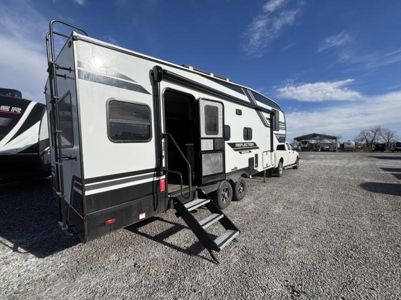With any Reflection 150 Series fifth wheel by Grand Design, there is more available payload capacity and a broader range of half-ton trucks capable of towing this fifth wheel, and no slider hitch is needed thanks to the 90-degree turning radius which makes them short bed friendly and easier to tow. The mandatory Ultimate Power package provides a "One-Touch" automatic leveling system and a detachable power cord with LED light for easy setup, plus motion sensor pass-through lighting and entry lighting, and the Tire Linc TPMS will help you stay safe on the road. The interior offers residential cabinetry and premium Congoleum flooring, to the booth dinette and residential-style window treatment. Make your refined decision today!