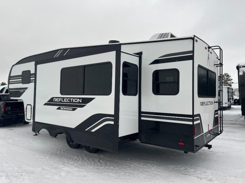 With any Reflection 150 Series fifth wheel by Grand Design, there is more available payload capacity and a broader range of half-ton trucks capable of towing this fifth wheel, and no slider hitch is needed thanks to the 90-degree turning radius which makes them short bed friendly and easier to tow. The mandatory Ultimate Power package provides a "One-Touch" automatic leveling system and a detachable power cord with LED light for easy setup, plus motion sensor pass-through lighting and entry lighting, and the Tire Linc TPMS will help you stay safe on the road. The interior offers residential cabinetry and premium Congoleum flooring, to the booth dinette and residential-style window treatment. Make your refined decision today!