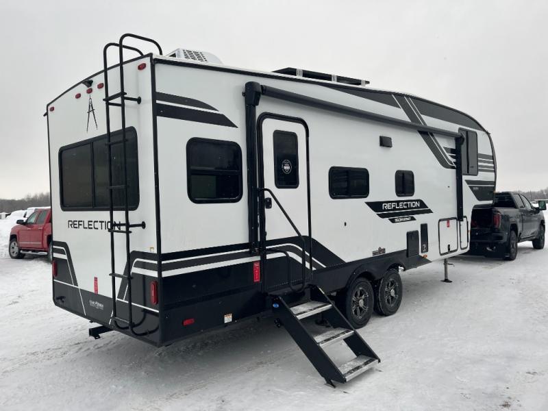 Feel right at home in this Reflection 150 Series with a private bedroom that includes a walk-around queen bed with storage on each side, windows, and a space savings sliding door. The full bathroom offers a walk-in shower, storage for your linens and a sliding door for easy access. When you get hungry, the cook will have an L-shaped kitchen area to make meals, plus full amenities including a 30" microwave, a flip-up counter extension, a pantry for your dry goods and a 16 cu. ft. refrigerator to store lots of food and cold beverages. You can dine at the rear U-shaped dinette lounge and enjoy the view out of all the windows or outside under the 18' electric awning. And the 78" theatre seating will be a nice place to relax and watch the 40" LED HDTV.