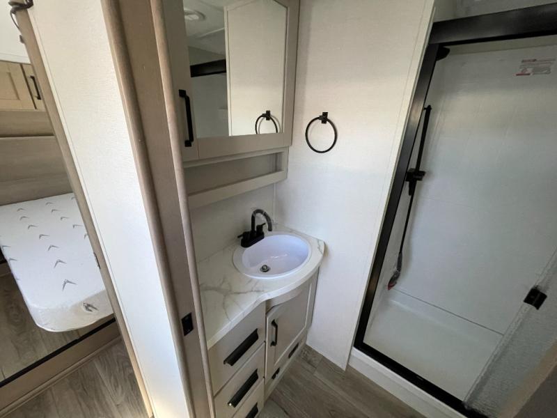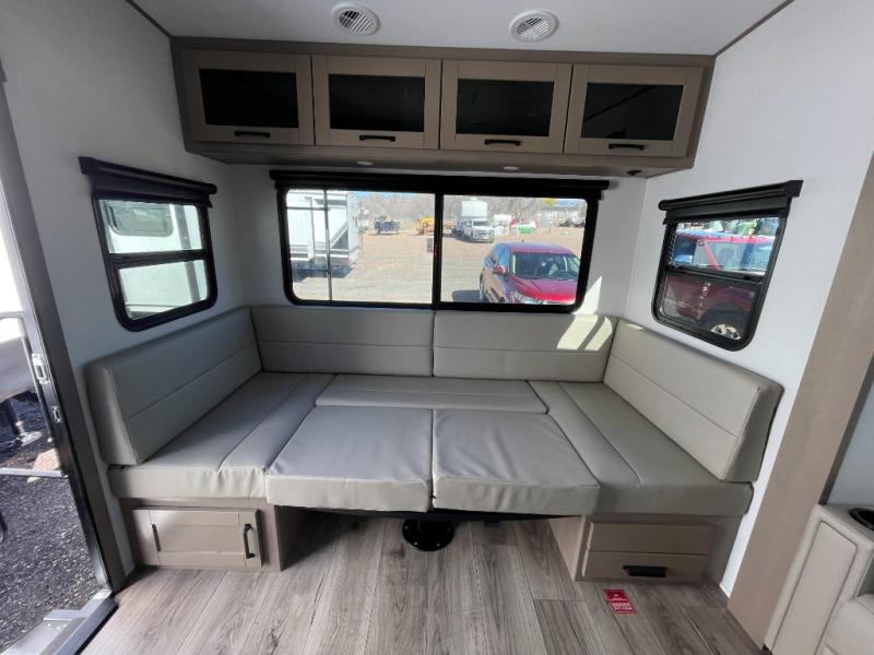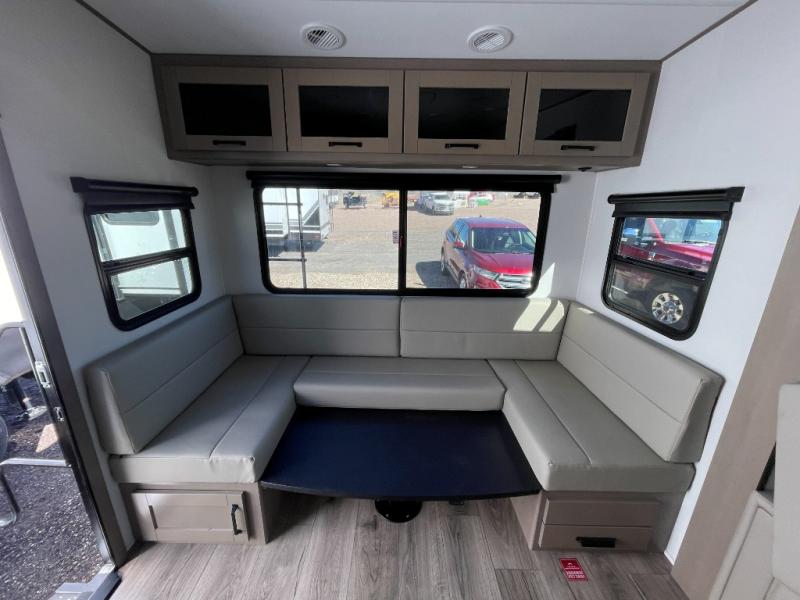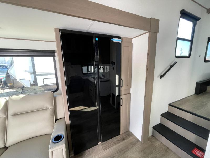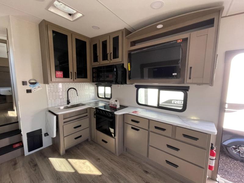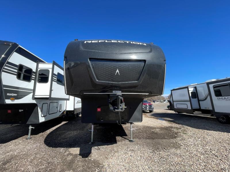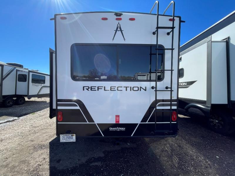 With any Reflection 150 Series fifth wheel by Grand Design, there is more available payload capacity and a broader range of half-ton trucks capable of towing this fifth wheel, and no slider hitch is needed thanks to the 90-degree turning radius which makes them short bed friendly and easier to tow. The mandatory Ultimate Power package provides a "One-Touch" automatic leveling system and a detachable power cord with LED light for easy setup, plus motion sensor pass-through lighting and entry lighting, and the Tire Linc TPMS will help you stay safe on the road. The interior offers residential cabinetry and premium Congoleum flooring, to the booth dinette and residential-style window treatment. Make your refined decision today!