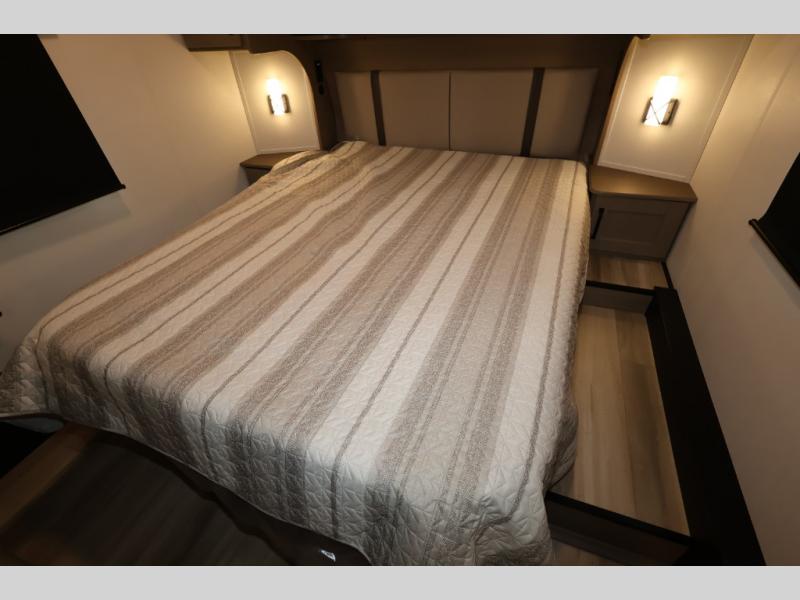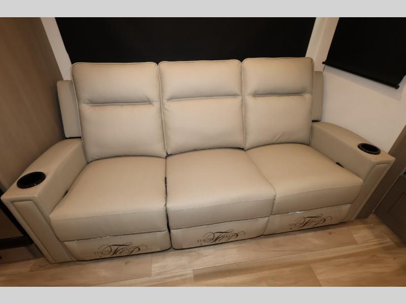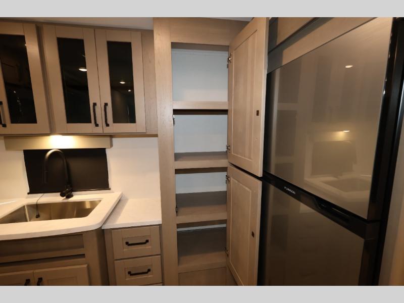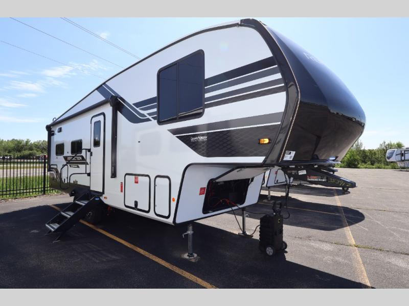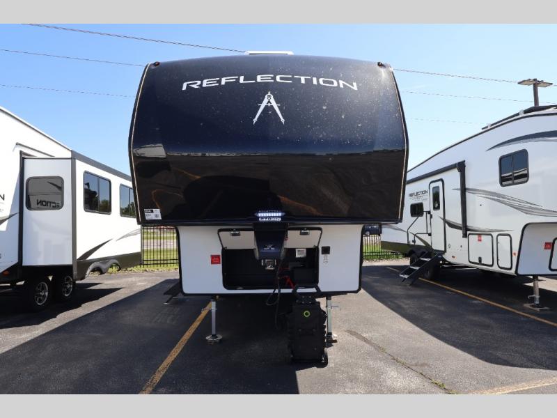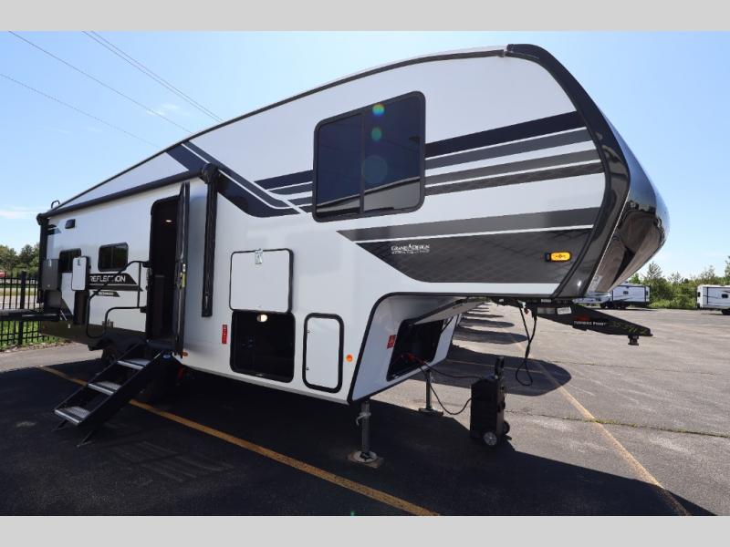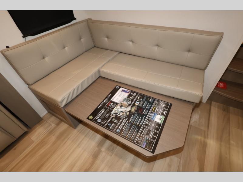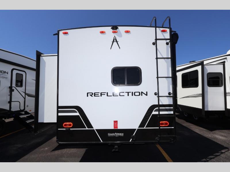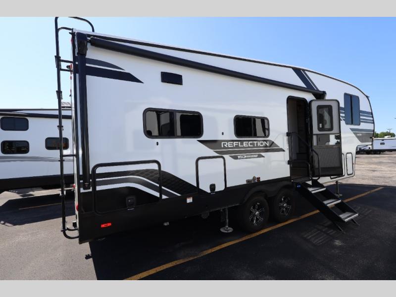 With any Reflection 150 Series fifth wheel by Grand Design, there is more available payload capacity and a broader range of half-ton trucks capable of towing this fifth wheel, and no slider hitch is needed thanks to the 90-degree turning radius which makes them short bed friendly and easier to tow. The mandatory Ultimate Power package provides a "One-Touch" automatic leveling system and a detachable power cord with LED light for easy setup, plus motion sensor pass-through lighting and entry lighting, and the Tire Linc TPMS will help you stay safe on the road. The interior offers residential luxury from the cabinetry and premium Congoleum flooring, to the booth dinette and residential-style window treatment. Make your refined decision today!