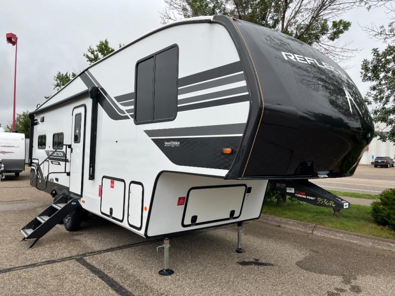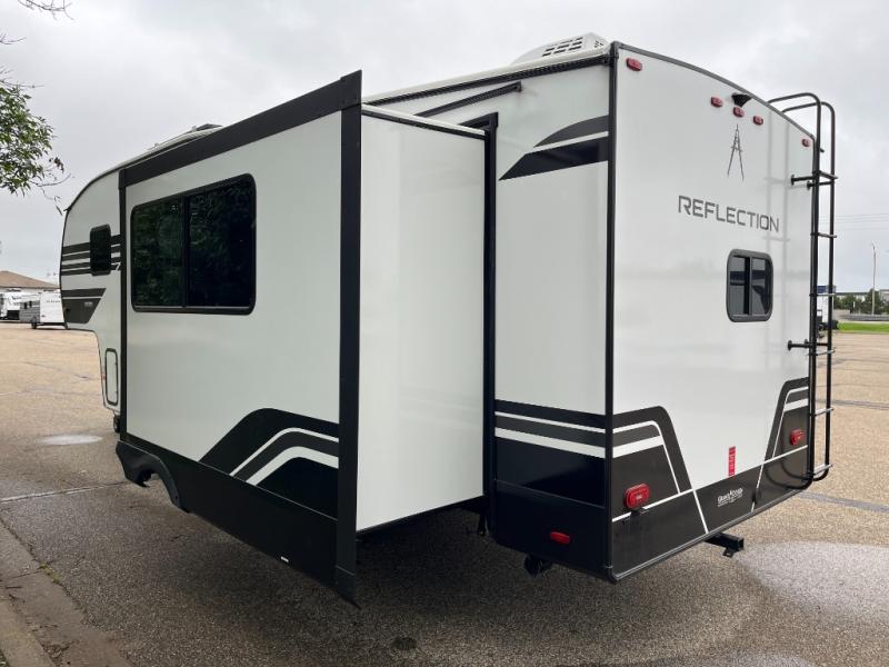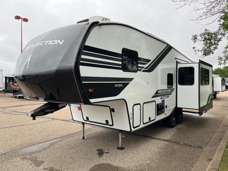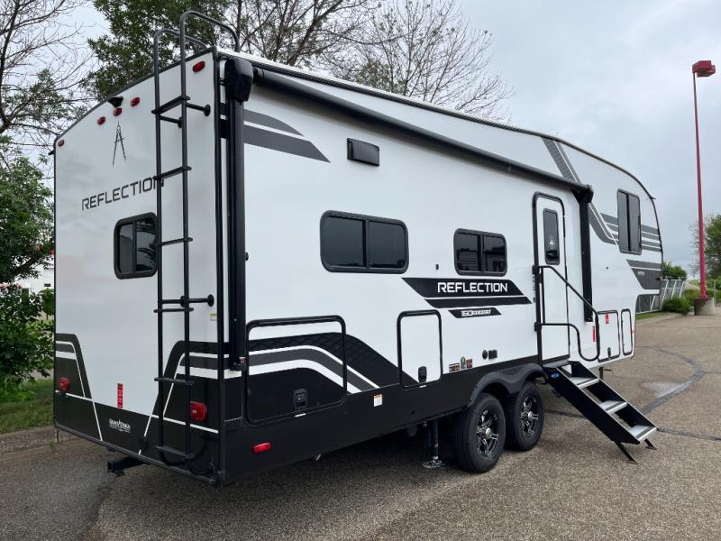 With any Reflection 150 Series fifth wheel by Grand Design, there is more available payload capacity and a broader range of half-ton trucks capable of towing this fifth wheel, and no slider hitch is needed thanks to the 90-degree turning radius which makes them short bed friendly and easier to tow. The mandatory Ultimate Power package provides a "One-Touch" automatic leveling system and a detachable power cord with LED light for easy setup, plus motion sensor pass-through lighting and entry lighting, and the Tire Linc TPMS will help you stay safe on the road. The interior offers residential luxury from the cabinetry and premium Congoleum flooring, to the booth dinette and residential-style window treatment. Make your refined decision today!