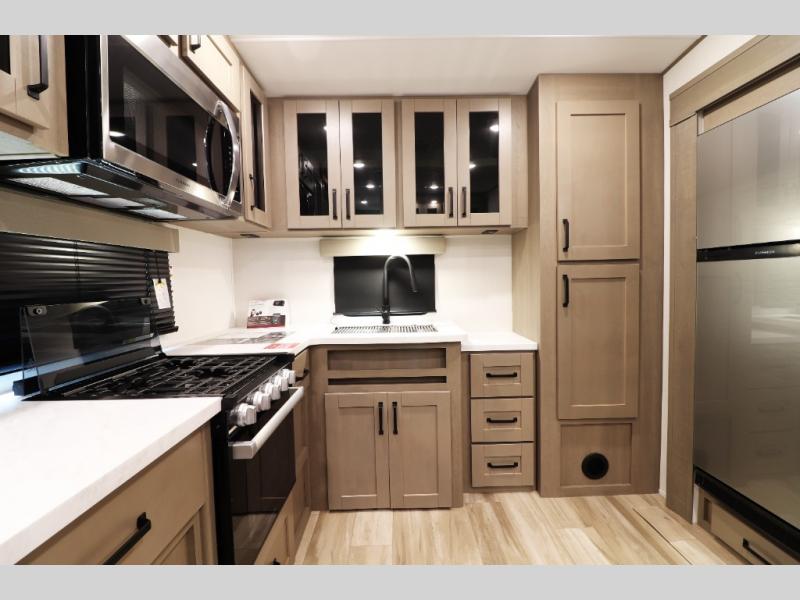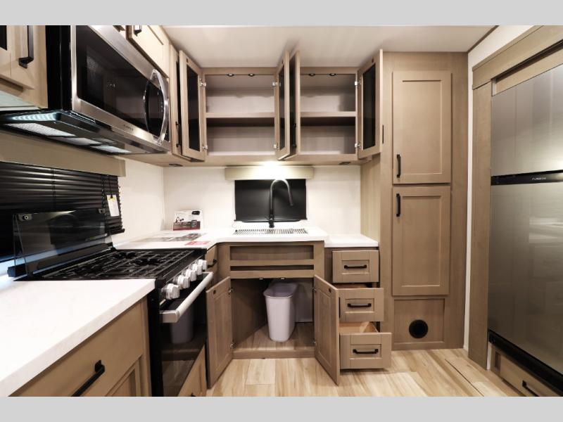 Rear Kitchen – Fully equipped to cook your favorite meals while on the road.