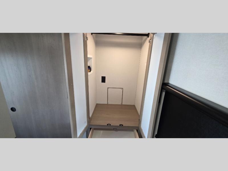 Private Front Bedroom: Retreat to your queen bedroom with full wardrobes, overhead cabinets, and washer/dryer prep, so you can stay comfortable and organized on longer trips.