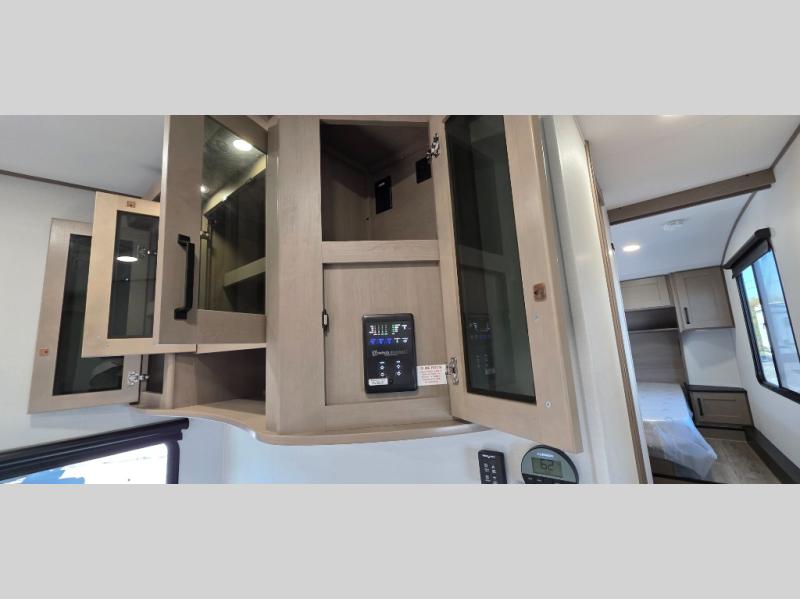 Luxury Finishes Inside and Out: Stylish cabinetry, modern hardware, LED lighting, ducted heating and cooling, and solid surface countertops give the 270BN a high-end residential feel.