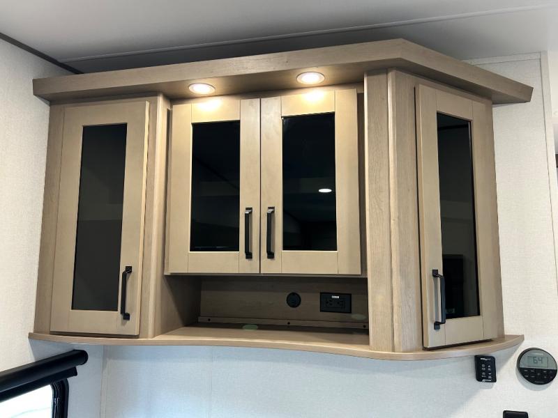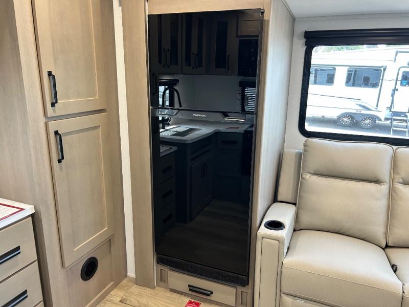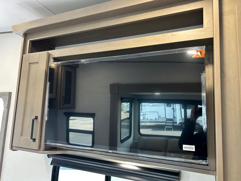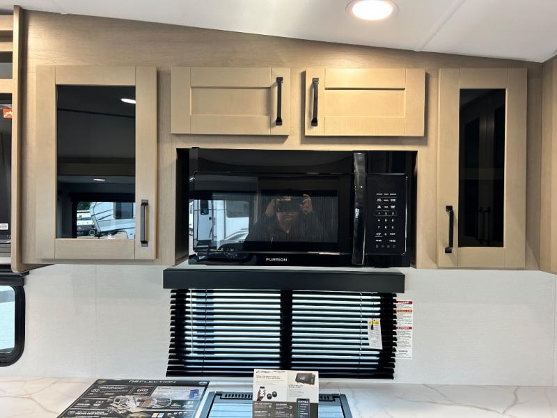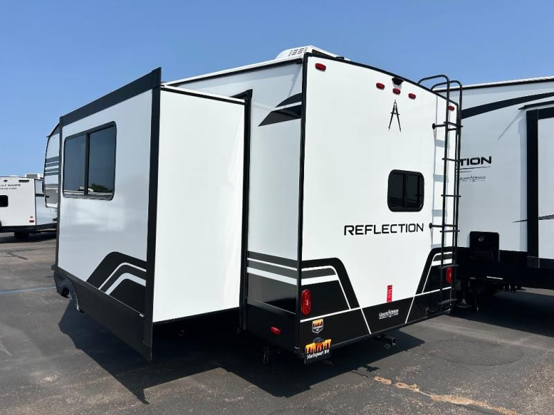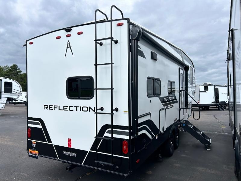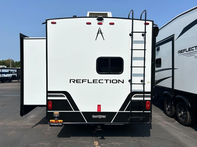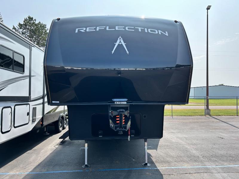 With any Reflection 150 Series fifth wheel by Grand Design, there is more available payload capacity and a broader range of half-ton trucks capable of towing this fifth wheel, and no slider hitch is needed thanks to the 90-degree turning radius which makes them short bed friendly and easier to tow. The mandatory Ultimate Power package provides a "One-Touch" automatic leveling system and a detachable power cord with LED light for easy setup, plus motion sensor pass-through lighting and entry lighting, and the Tire Linc TPMS will help you stay safe on the road. The interior offers residential luxury from the cabinetry and premium Congoleum flooring, to the booth dinette and residential-style window treatment. Make your refined decision today!