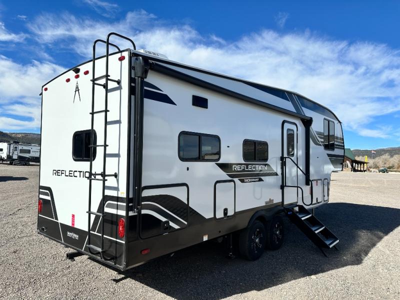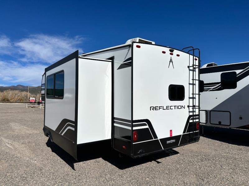 With any Reflection 150 Series fifth wheel by Grand Design, there is more available payload capacity and a broader range of half-ton trucks capable of towing this fifth wheel, and no slider hitch is needed thanks to the 90-degree turning radius which makes them short bed friendly and easier to tow. The mandatory Ultimate Power package provides a "One-Touch" automatic leveling system and a detachable power cord with LED light for easy setup, plus motion sensor pass-through lighting and entry lighting, and the Tire Linc TPMS will help you stay safe on the road. The interior offers residential luxury from the cabinetry and premium Congoleum flooring, to the booth dinette and residential-style window treatment. Make your refined decision today!