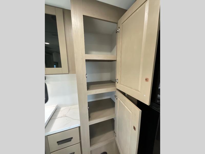 With any Reflection 150 Series fifth wheel by Grand Design, there is more available payload capacity and a broader range of half-ton trucks capable of towing this fifth wheel, and no slider hitch is needed thanks to the 90-degree turning radius which makes them short bed friendly and easier to tow. The mandatory Ultimate Power package provides a "One-Touch" automatic leveling system and a detachable power cord with LED light for easy setup, plus motion sensor pass-through lighting and entry lighting, and the Tire Linc TPMS will help you stay safe on the road. The interior offers residential cabinetry and premium Congoleum flooring, to the booth dinette and residential-style window treatment. Make your refined decision today!