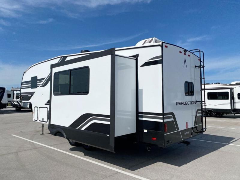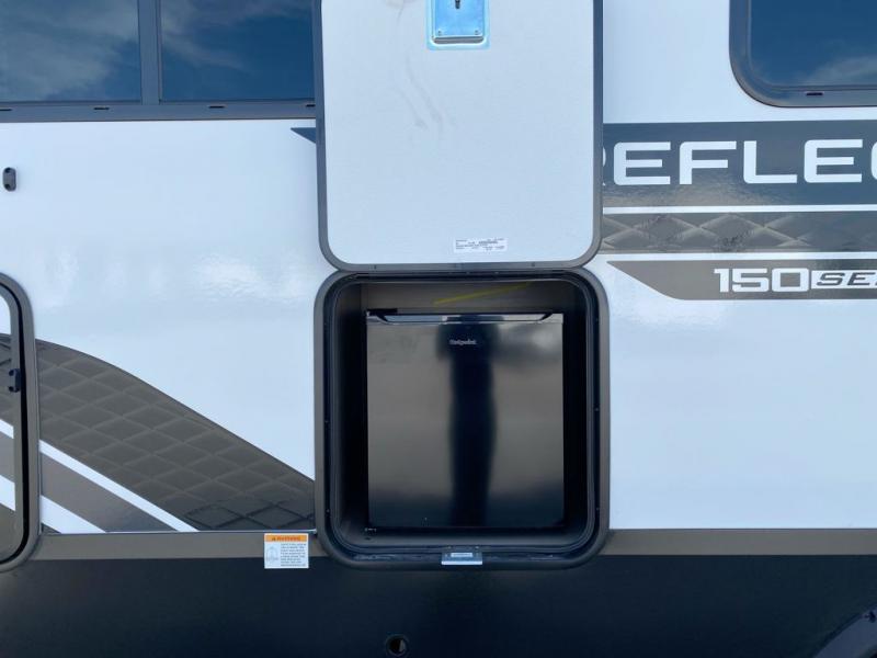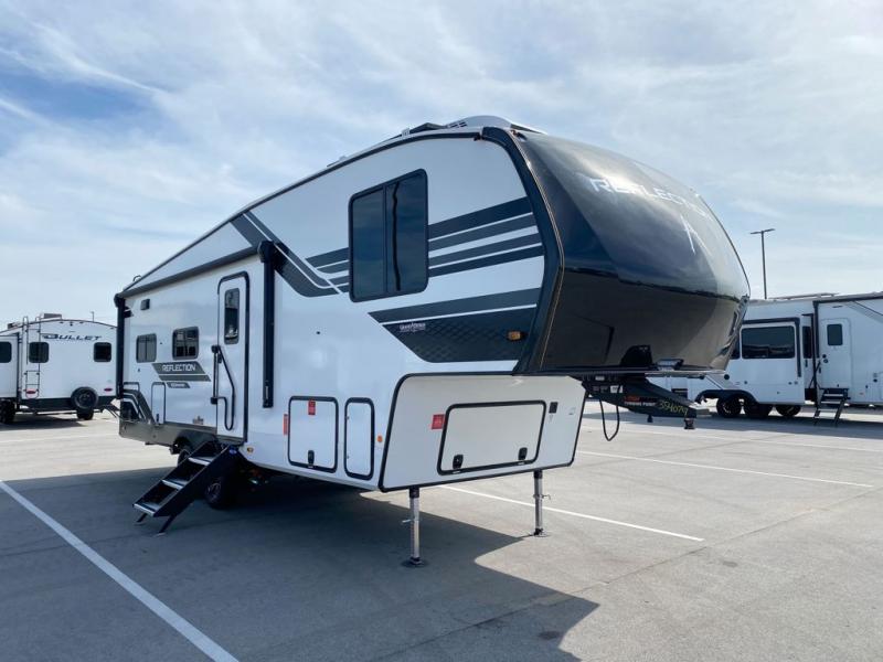 With any Reflection 150 Series fifth wheel by Grand Design, there is more available payload capacity and a broader range of half-ton trucks capable of towing this fifth wheel, and no slider hitch is needed thanks to the 90-degree turning radius which makes them short bed friendly and easier to tow. The mandatory Ultimate Power package provides a "One-Touch" automatic leveling system and a detachable power cord with LED light for easy setup, plus motion sensor pass-through lighting and entry lighting, and the Tire Linc TPMS will help you stay safe on the road. The interior offers residential cabinetry and premium Congoleum flooring, to the booth dinette and residential-style window treatment. Make your refined decision today!