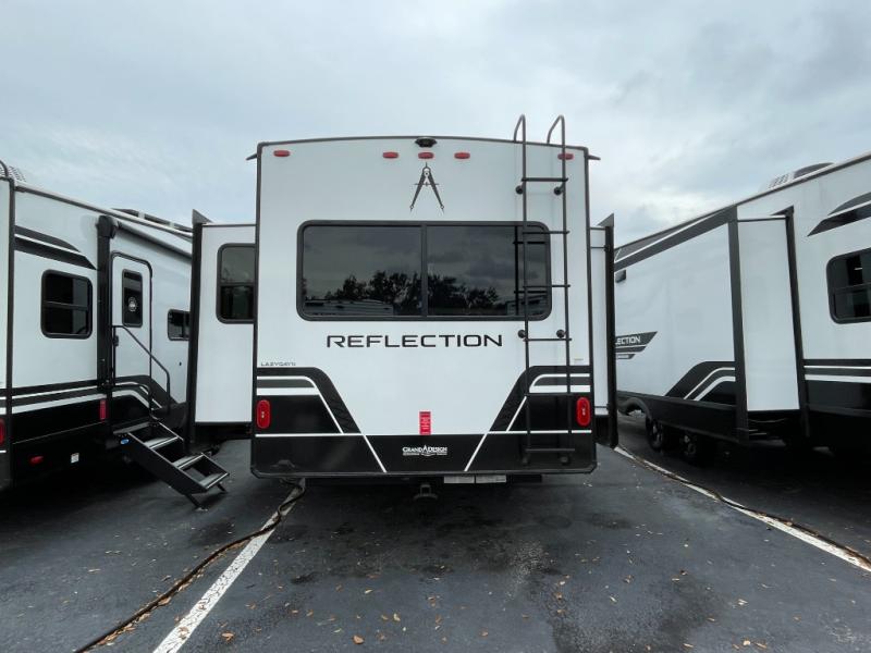 With any Reflection 150 Series fifth wheel by Grand Design, there is more available payload capacity and a broader range of half-ton trucks capable of towing this fifth wheel, and no slider hitch is needed thanks to the 90-degree turning radius which makes them short bed friendly and easier to tow. The mandatory Ultimate Power package provides a "One-Touch" automatic leveling system and a detachable power cord with LED light for easy setup, plus motion sensor pass-through lighting and entry lighting, and the Tire Linc TPMS will help you stay safe on the road. The interior offers residential cabinetry and premium Congoleum flooring, to the booth dinette and residential-style window treatment. Make your refined decision today!