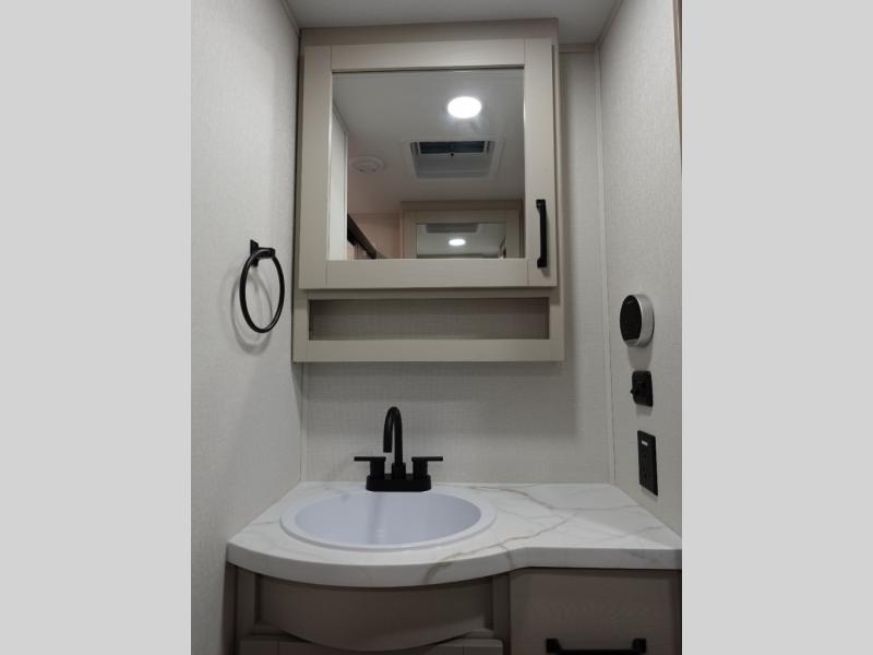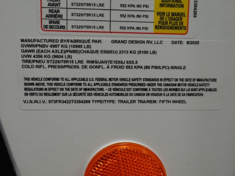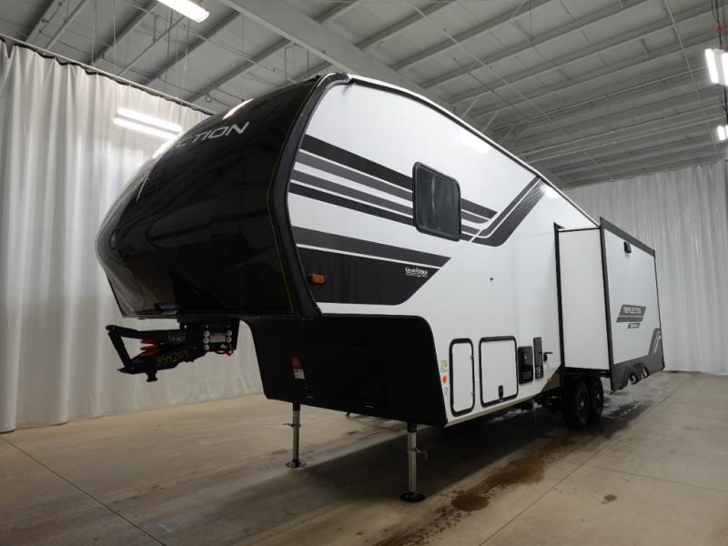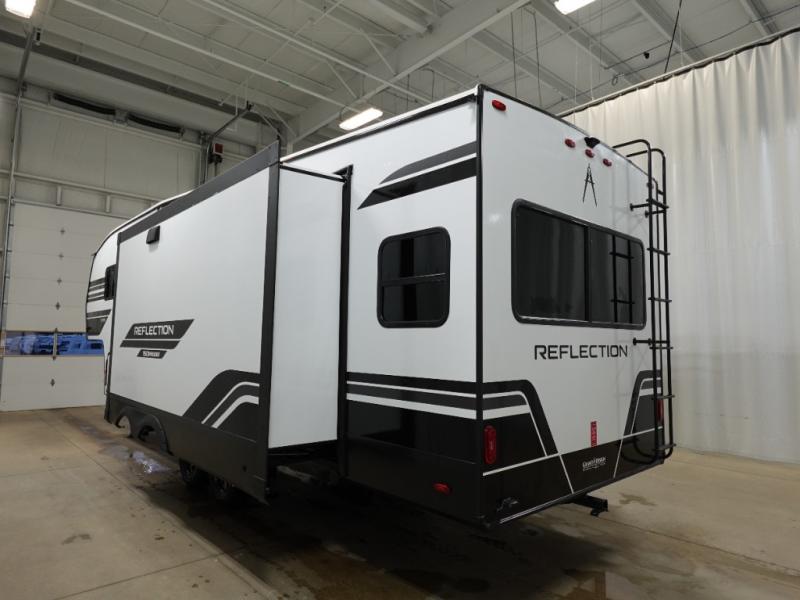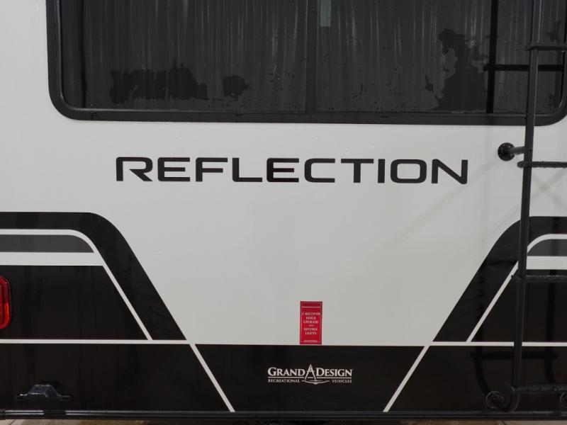 With any Reflection 150 Series fifth wheel by Grand Design, there is more available payload capacity and a broader range of half-ton trucks capable of towing this fifth wheel, and no slider hitch is needed thanks to the 90-degree turning radius which makes them short bed friendly and easier to tow. The mandatory Ultimate Power package provides a "One-Touch" automatic leveling system and a detachable power cord with LED light for easy setup, plus motion sensor pass-through lighting and entry lighting, and the Tire Linc TPMS will help you stay safe on the road. The interior offers residential luxury from the cabinetry and premium Congoleum flooring, to the booth dinette and residential-style window treatment. Make your refined decision today!