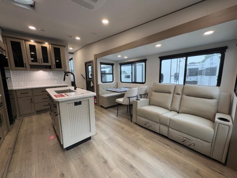 The Grand Design Reflection 150 Series 295RL combines comfort, versatility, and half-ton towable convenience. With dual opposing slides, residential-style finishes, and thoughtful storage solutions, this fifth wheel is perfect for couples or small families who want a lighter unit without sacrificing luxury.